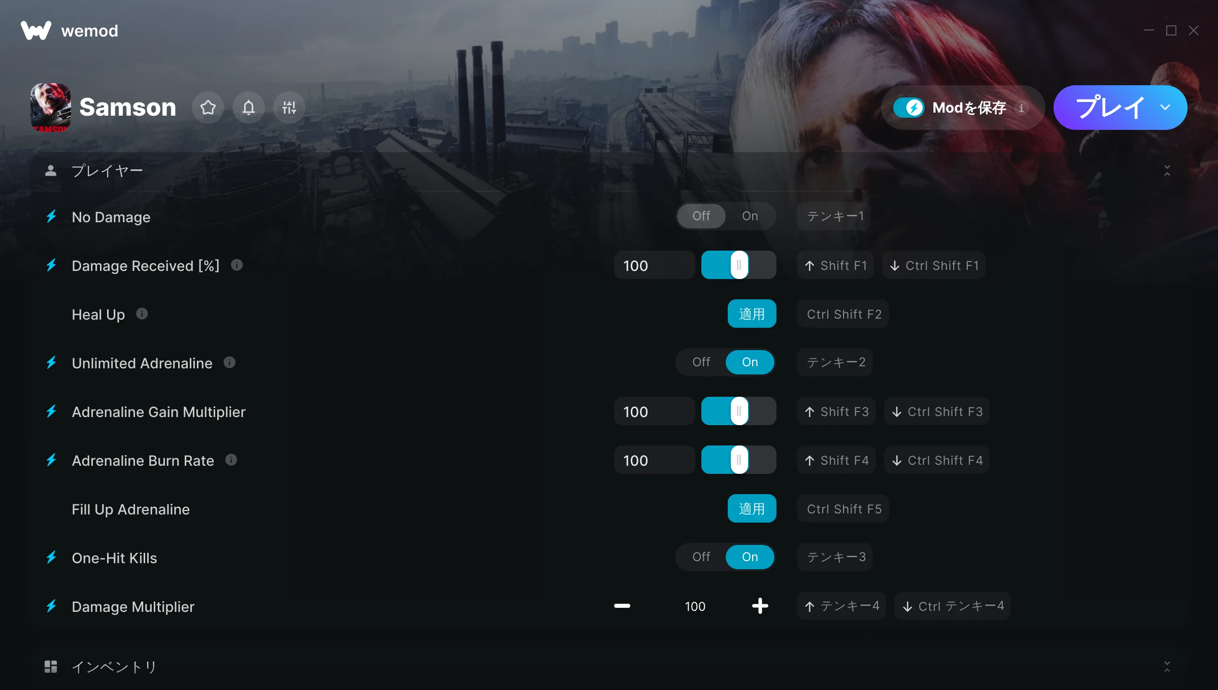 85MB Windows ...またはPCでWeModにアクセスしてアプリをダウンロード No Damageを入手, Damage Received [%] & その他27件のMod for Samson with WeMod