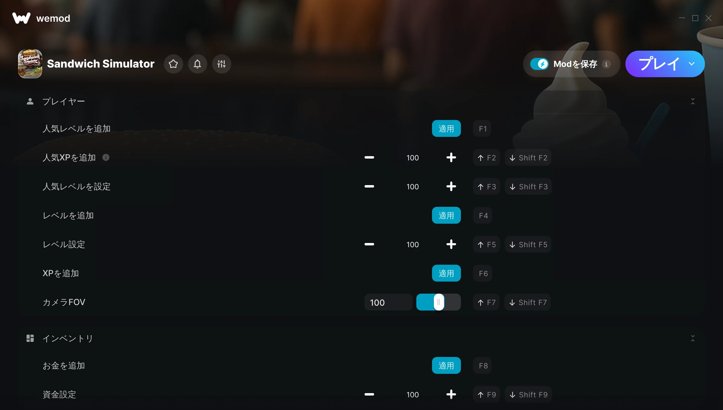 85MB Windows ...またはPCでWeModにアクセスしてアプリをダウンロード 人気レベルを追加を入手, 人気XPを追加 & その他20件のMod for Sandwich Simulator with WeMod