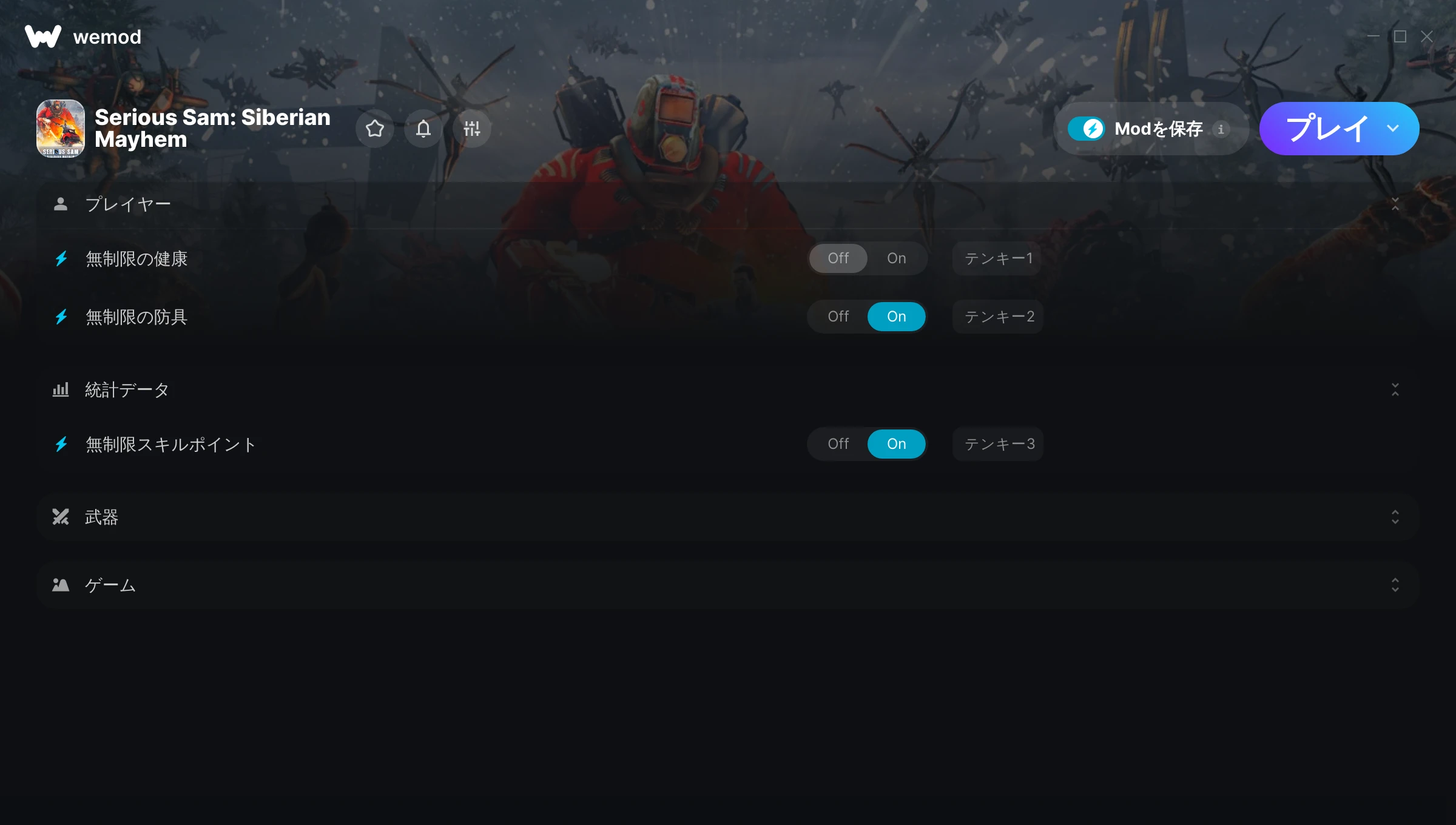85MB Windows ...またはPCでWeModにアクセスしてアプリをダウンロード 無制限の健康を入手, 無制限の防具 & その他4件のMod for Serious Sam: Siberian Mayhem with WeMod