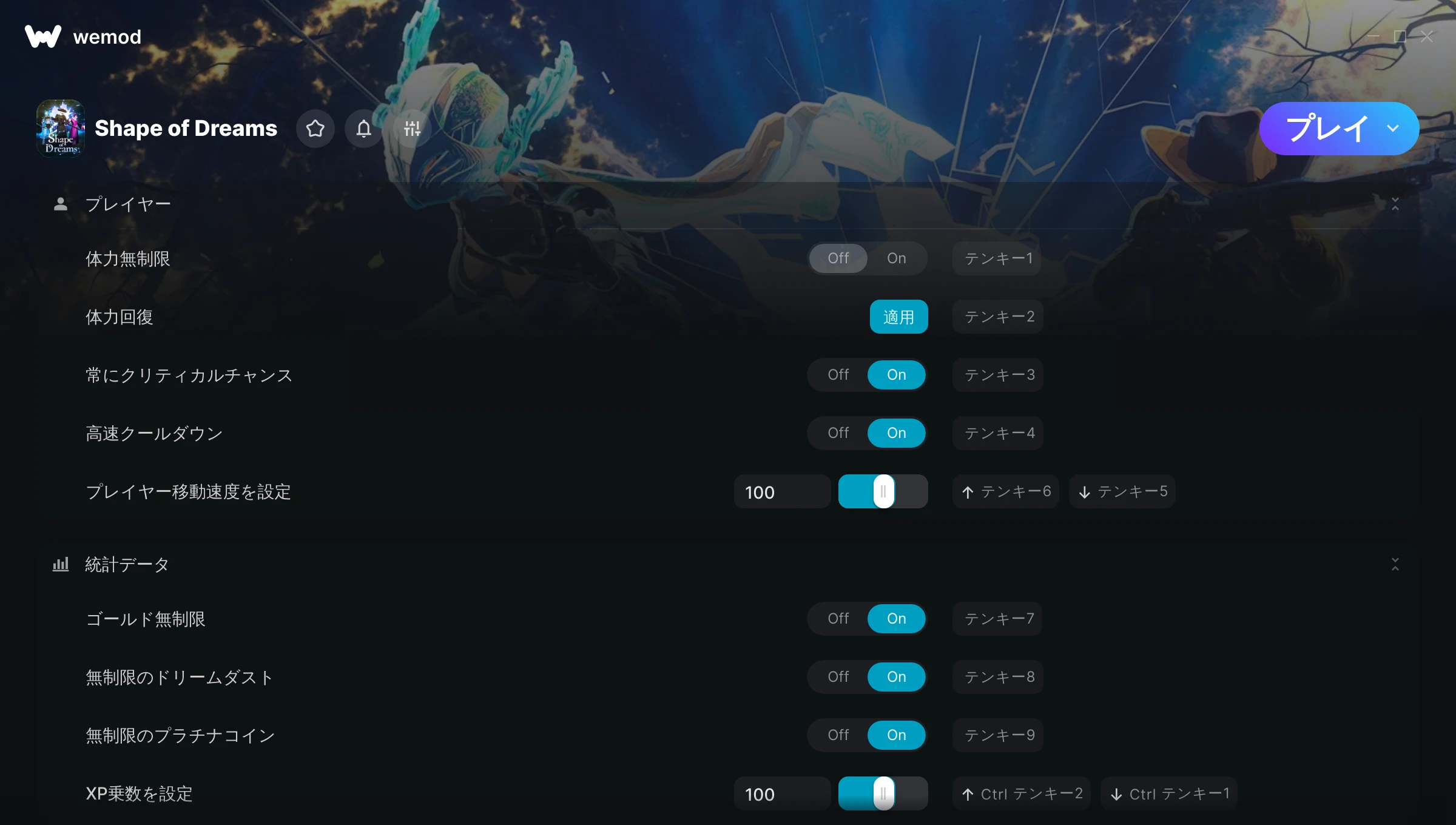 85MB Windows ...またはPCでWeModにアクセスしてアプリをダウンロード 体力無制限を入手, 体力回復 & その他11件のMod for Shape of Dreams with WeMod