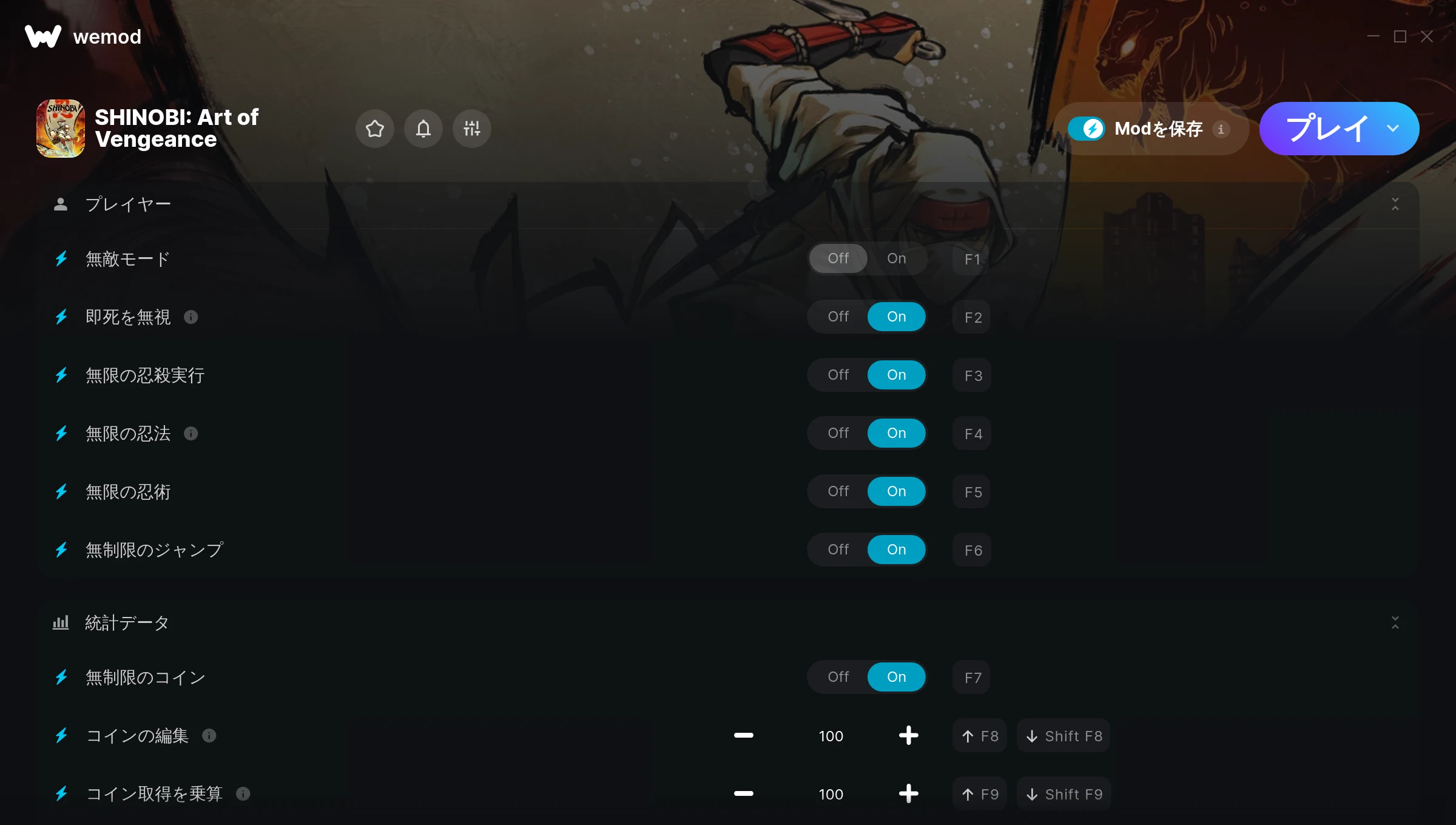 SHINOBI: Art of Vengeanceでチートを使うにはどうすればよいですか?WeModはすべてのゲームをPC上に安全に表現します。リストからゲームを開き、プレイを開始するだけです。ゲームが読み込まれ、ユーザーがゲーム内に入ると、さまざまなチートを有効化できるようになります!これは私のゲームのバージョンで動作しますか?WeModは高度な技術を使用して、実行中のゲームのバージョンを検知し、対応しているかどうかをユーザーに通知します。通知がなくても試してみることができますが、その場合はアップデートをリクエストしてみてください!