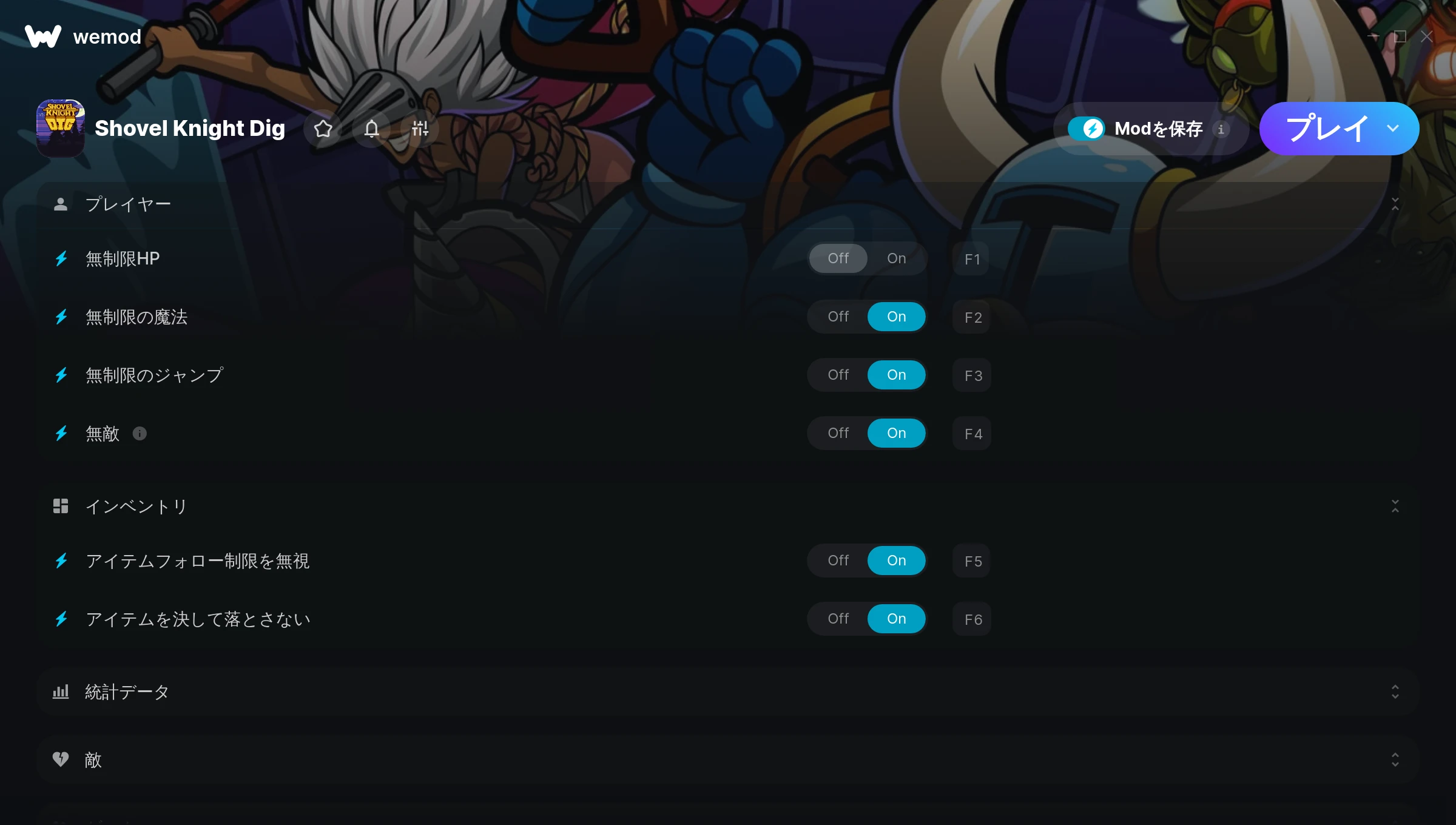 85MB Windows ...またはPCでWeModにアクセスしてアプリをダウンロード 無制限HPを入手, 無制限の魔法 & その他11件のMod for Shovel Knight Dig with WeMod