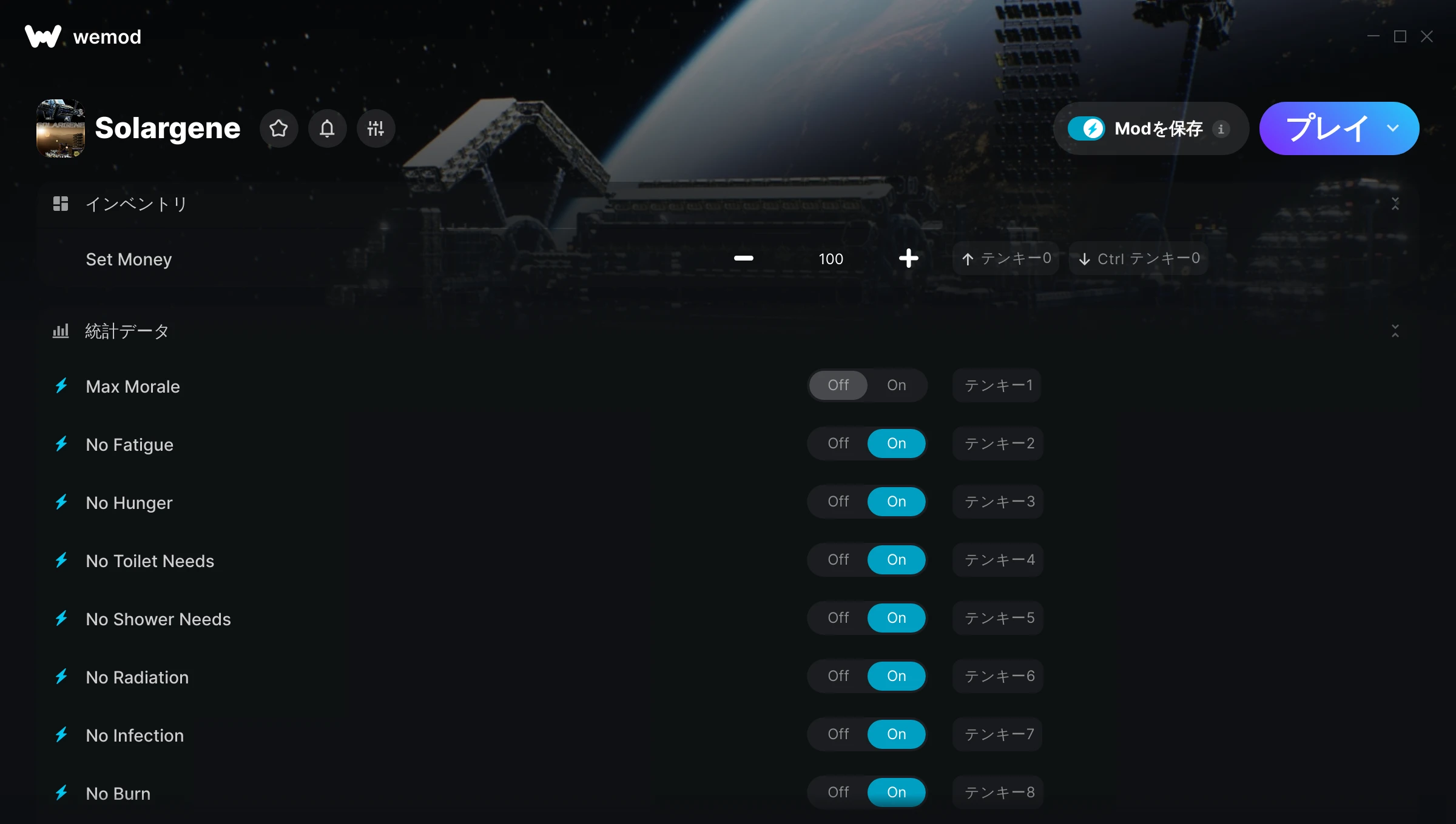 85MB Windows ...またはPCでWeModにアクセスしてアプリをダウンロード 資金設定を入手, お金を追加 & その他14件のMod for Solargene with WeMod