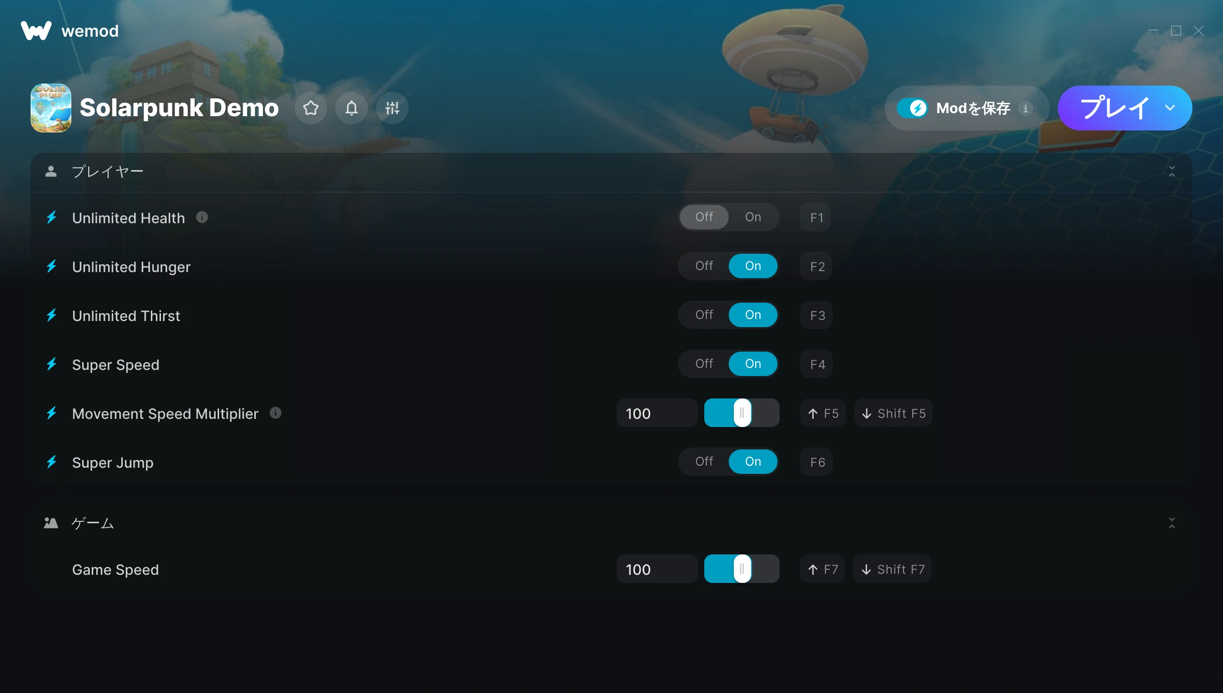 85MB Windows ...またはPCでWeModにアクセスしてアプリをダウンロード Unlimited Healthを入手, Unlimited Hunger & その他5件のMod for Solarpunk Demo with WeMod