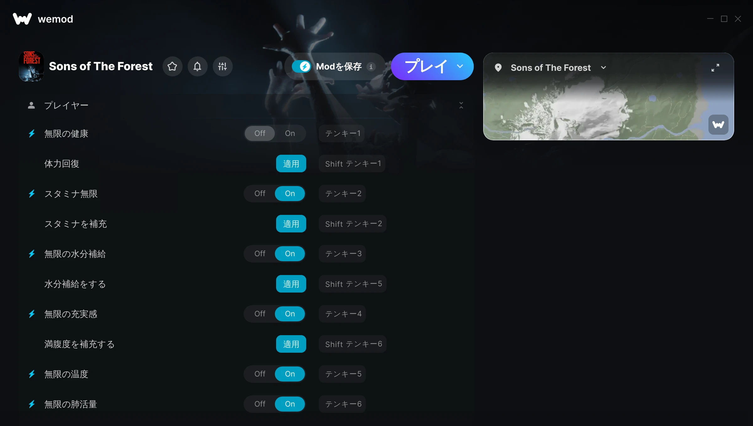 Huge thanks to the WeMod team for the amazing Sons of the Forest mods! They remove so much of the tedious parts of the game, making it more fun and enjoyable. Exploring and surviving feels smoother, and the game overall is just better with your mods.