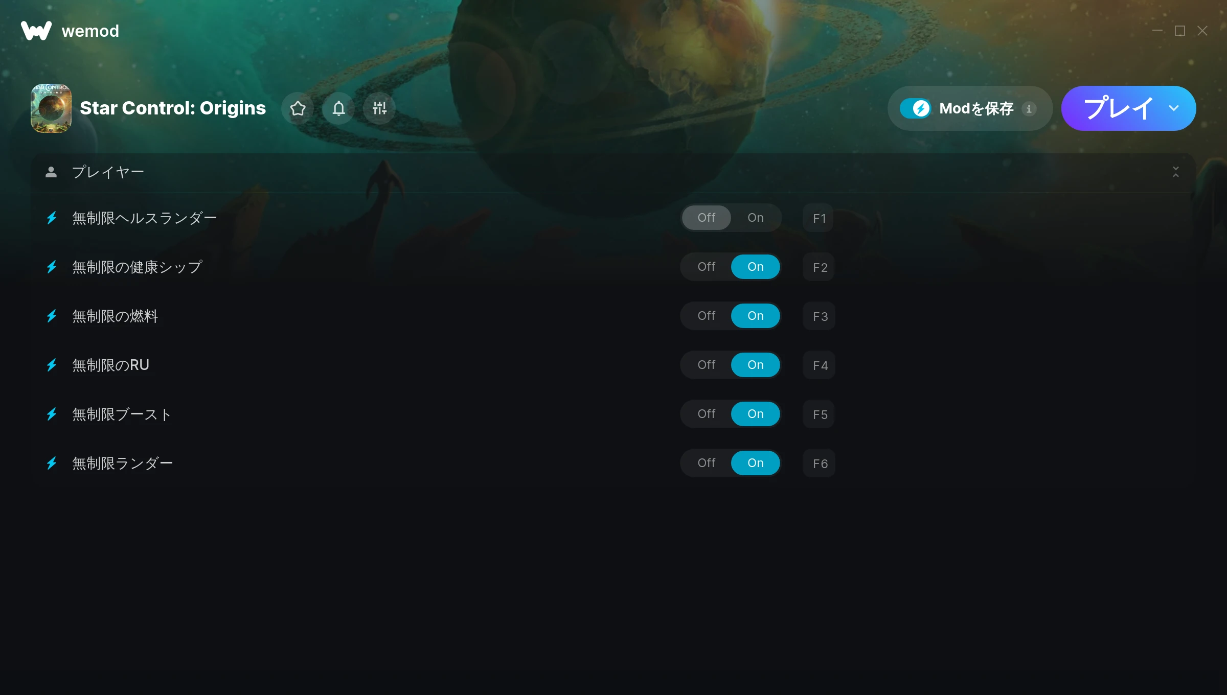 Star Control: Originsでチートを使うにはどうすればよいですか?WeModはすべてのゲームをPC上に安全に表現します。リストからゲームを開き、プレイを開始するだけです。ゲームが読み込まれ、ユーザーがゲーム内に入ると、さまざまなチートを有効化できるようになります!これは私のゲームのバージョンで動作しますか?WeModは高度な技術を使用して、実行中のゲームのバージョンを検知し、対応しているかどうかをユーザーに通知します。通知がなくても試してみることができますが、その場合はアップデートをリクエストしてみてください!