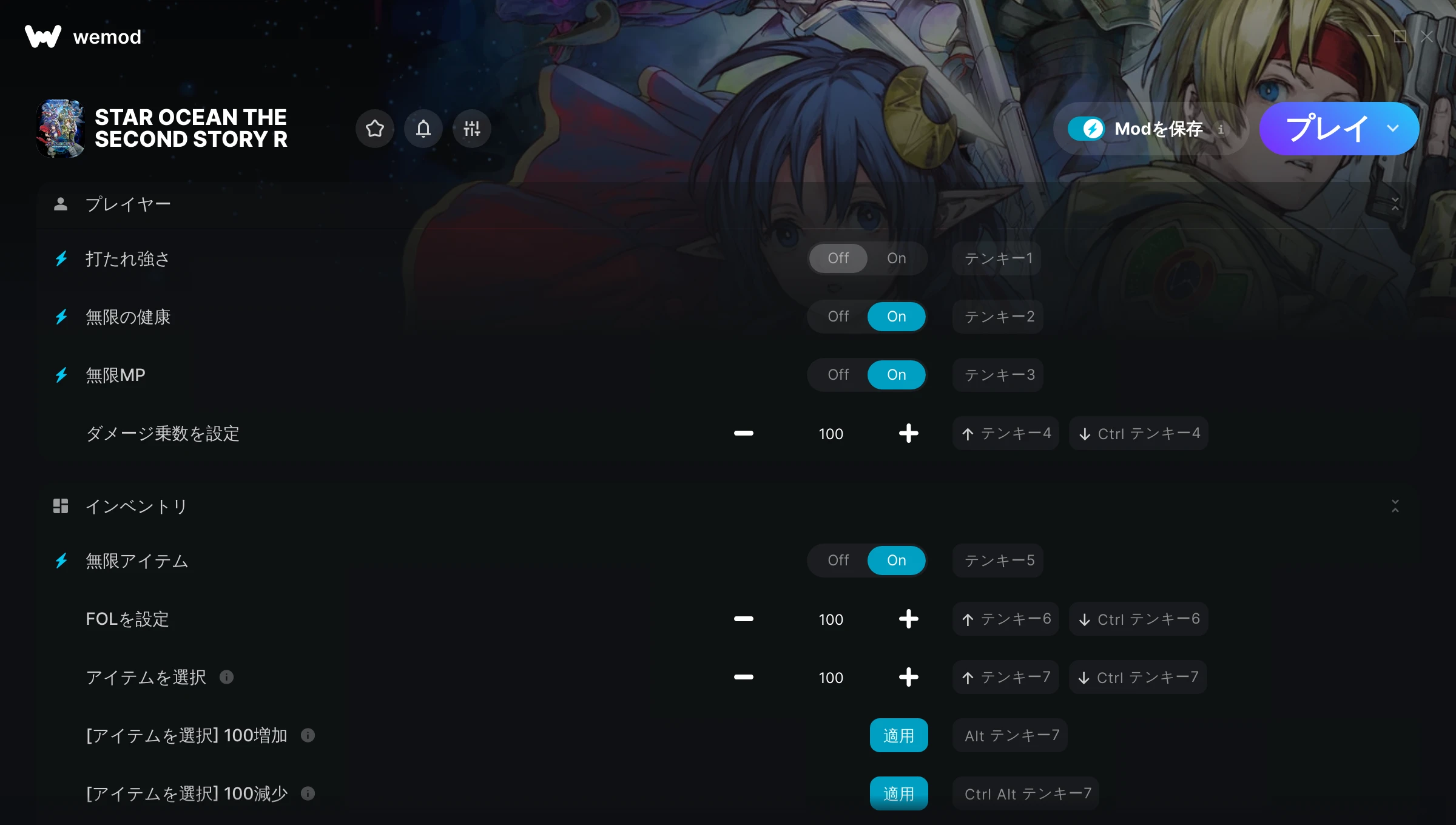85MB Windows ...またはPCでWeModにアクセスしてアプリをダウンロード 打たれ強さを入手, 無限の健康 & その他20件のMod for STAR OCEAN THE SECOND STORY R with WeMod