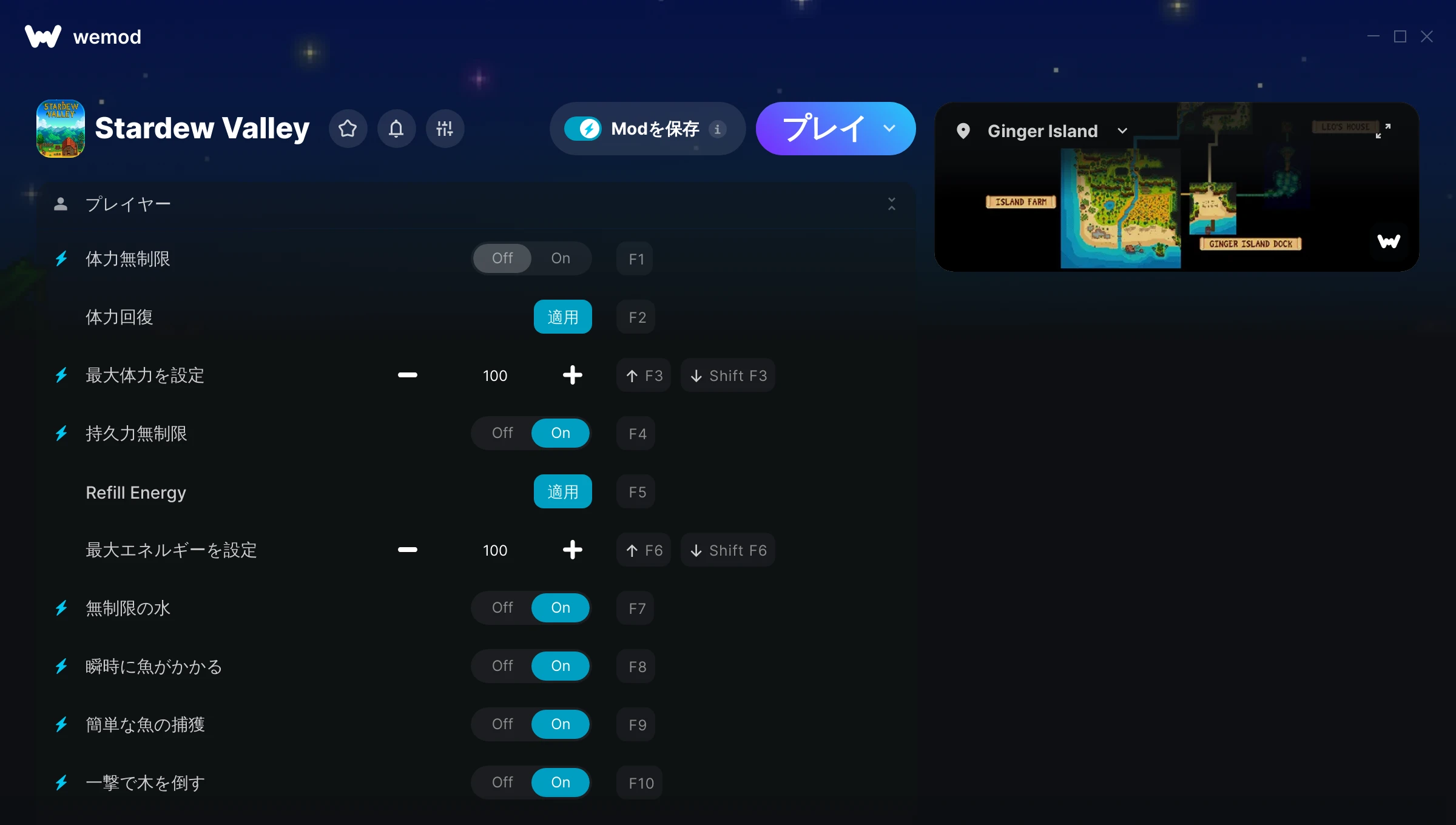 Thanks for making this! Just a suggestion if you want to add something, make it so that you can put an ID for an item in somewhere and then you get that item, and that unlimited items gives 999 instead of 99, and that when you use unlimited health the bar doesn't go all the way up, and that your tools get auto upgraded to iridium with best enchants and forges. Also make it so you can skip the whole story line and you have access to Ginger Island and the Desert right away. Also auto-fill wallet mod and auto-perfection would be nice. Thanks for reading if you get to the end of this!!!