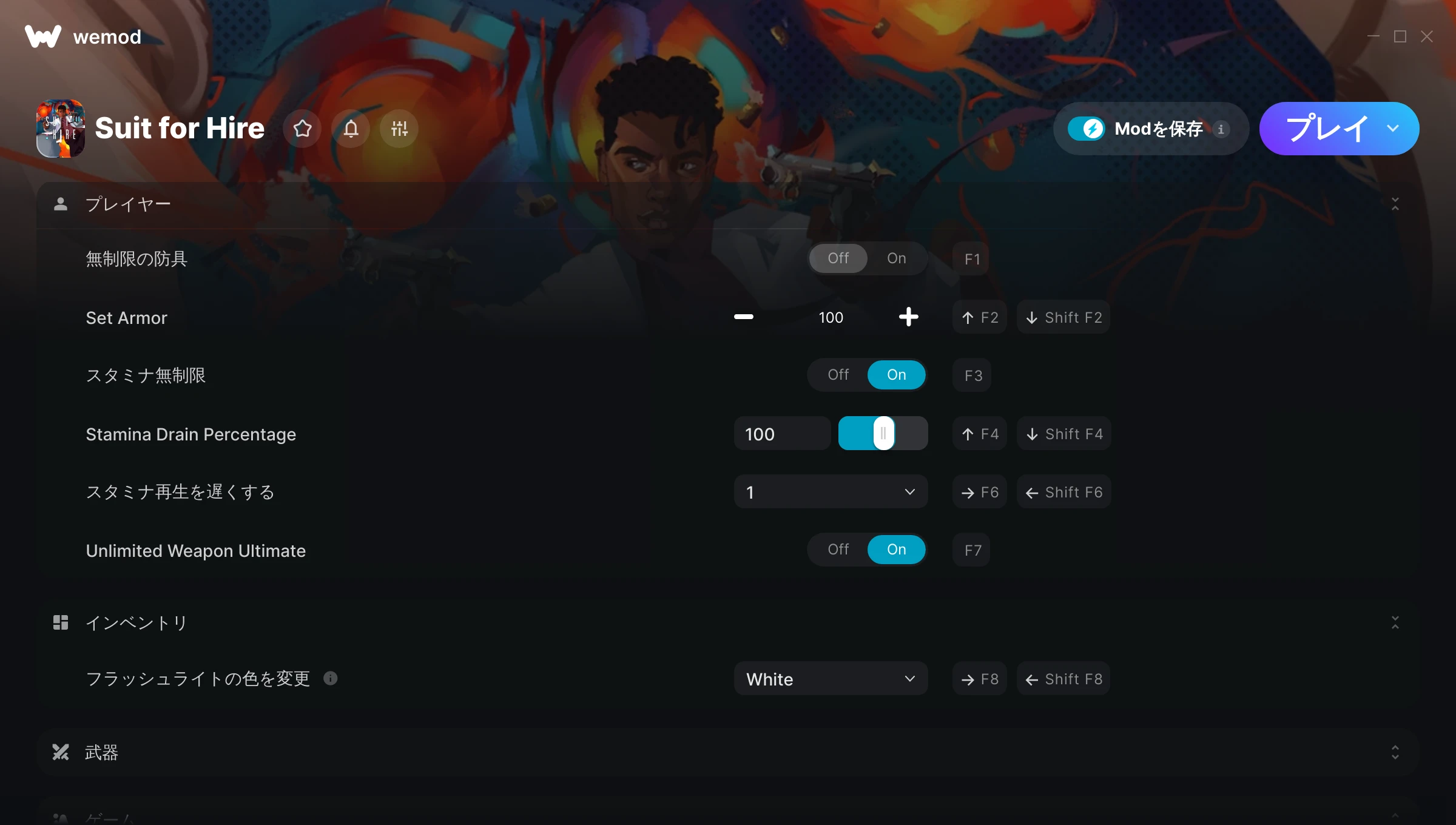 Suit for Hireでチートを使うにはどうすればよいですか?WeModはすべてのゲームをPC上に安全に表現します。リストからゲームを開き、プレイを開始するだけです。ゲームが読み込まれ、ユーザーがゲーム内に入ると、さまざまなチートを有効化できるようになります!これは私のゲームのバージョンで動作しますか?WeModは高度な技術を使用して、実行中のゲームのバージョンを検知し、対応しているかどうかをユーザーに通知します。通知がなくても試してみることができますが、その場合はアップデートをリクエストしてみてください!