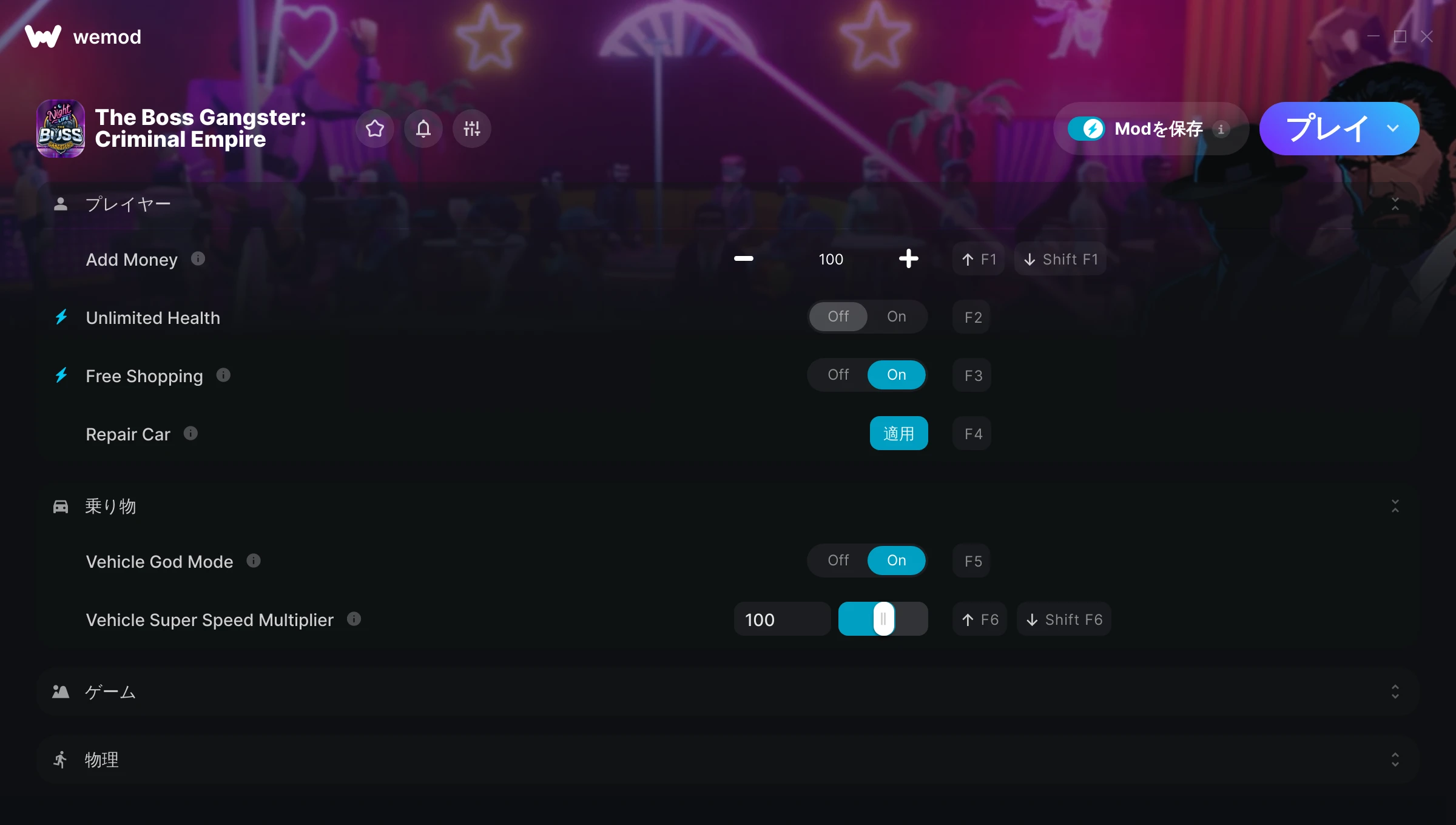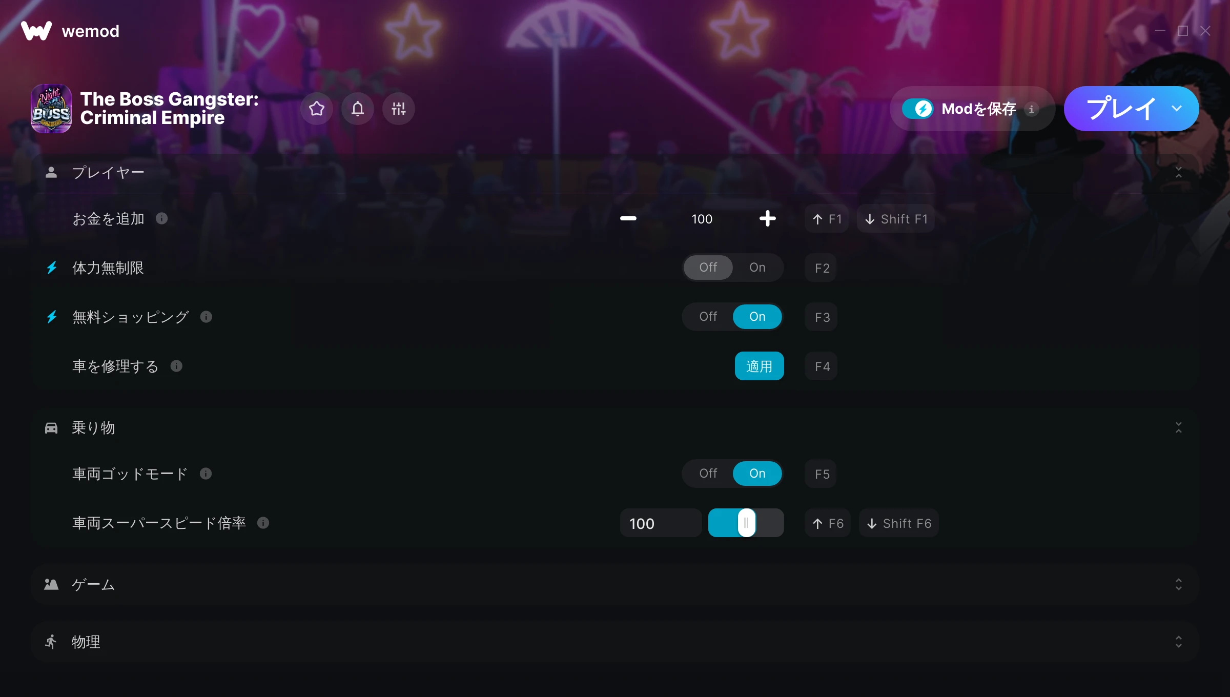 The Boss Gangster: Criminal Empireでチートを使うにはどうすればよいですか?WeModはすべてのゲームをPC上に安全に表現します。リストからゲームを開き、プレイを開始するだけです。ゲームが読み込まれ、ユーザーがゲーム内に入ると、さまざまなチートを有効化できるようになります!これは私のゲームのバージョンで動作しますか?WeModは高度な技術を使用して、実行中のゲームのバージョンを検知し、対応しているかどうかをユーザーに通知します。通知がなくても試してみることができますが、その場合はアップデートをリクエストしてみてください!