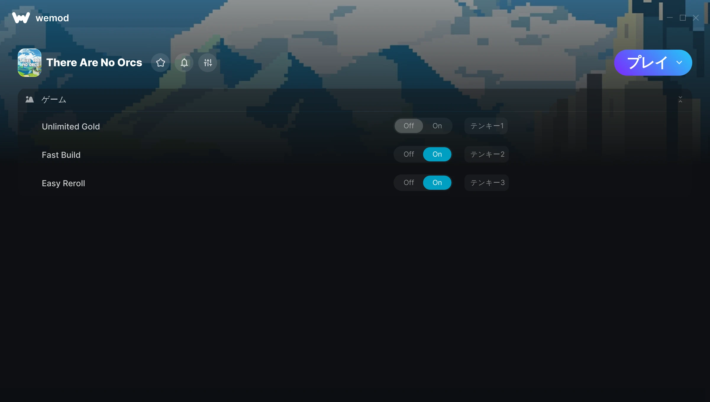 There Are No Orcsでチートを使うにはどうすればよいですか?WeModはすべてのゲームをPC上に安全に表現します。リストからゲームを開き、プレイを開始するだけです。ゲームが読み込まれ、ユーザーがゲーム内に入ると、さまざまなチートを有効化できるようになります!これは私のゲームのバージョンで動作しますか?WeModは高度な技術を使用して、実行中のゲームのバージョンを検知し、対応しているかどうかをユーザーに通知します。通知がなくても試してみることができますが、その場合はアップデートをリクエストしてみてください!
