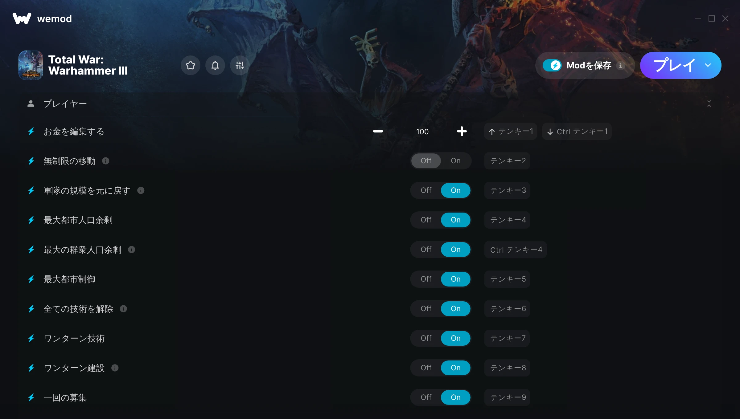 No issues everything works as advertised. Probably will play this game through without cheats with friends but as a new player to Warhammer 3, its extremely insanely in depth. I really needed an easy playthrough without have to go through the heartache of making stupid mistakes and paying for it with lost time. Made a very difficult game fun and easier to learn.