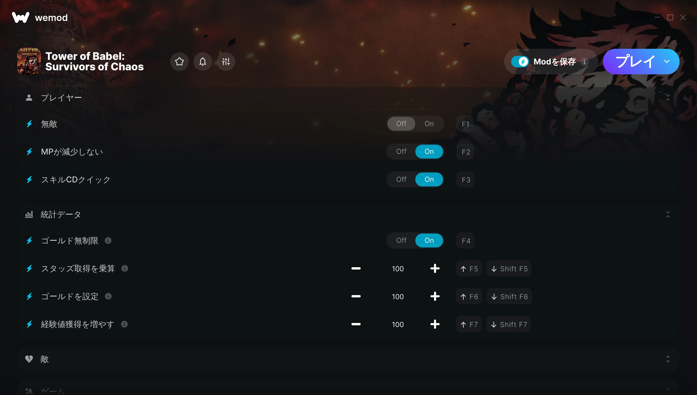 Tower of Babel: Survivors of Chaosでチートを使うにはどうすればよいですか?WeModはすべてのゲームをPC上に安全に表現します。リストからゲームを開き、プレイを開始するだけです。ゲームが読み込まれ、ユーザーがゲーム内に入ると、さまざまなチートを有効化できるようになります!これは私のゲームのバージョンで動作しますか?WeModは高度な技術を使用して、実行中のゲームのバージョンを検知し、対応しているかどうかをユーザーに通知します。通知がなくても試してみることができますが、その場合はアップデートをリクエストしてみてください!