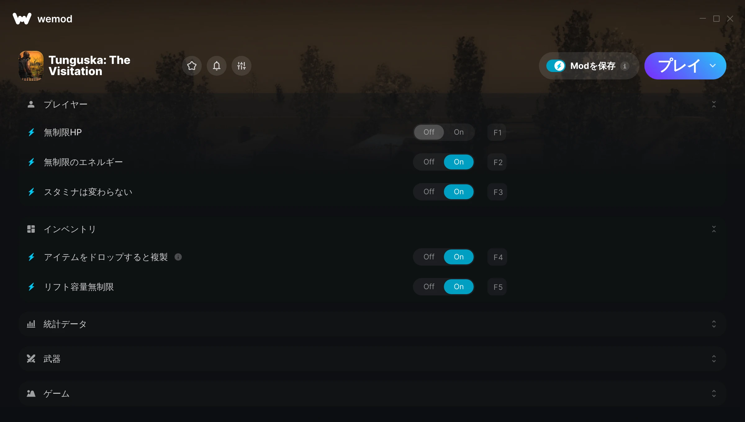 Tunguska: The Visitationでチートを使うにはどうすればよいですか?WeModはすべてのゲームをPC上に安全に表現します。リストからゲームを開き、プレイを開始するだけです。ゲームが読み込まれ、ユーザーがゲーム内に入ると、さまざまなチートを有効化できるようになります!これは私のゲームのバージョンで動作しますか?WeModは高度な技術を使用して、実行中のゲームのバージョンを検知し、対応しているかどうかをユーザーに通知します。通知がなくても試してみることができますが、その場合はアップデートをリクエストしてみてください!