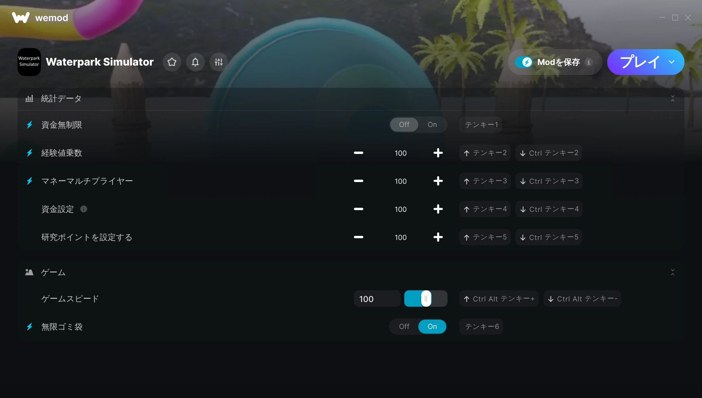 85MB Windows ...またはPCでWeModにアクセスしてアプリをダウンロード 資金無制限を入手, 経験値乗数 & その他5件のMod for Waterpark Simulator with WeMod