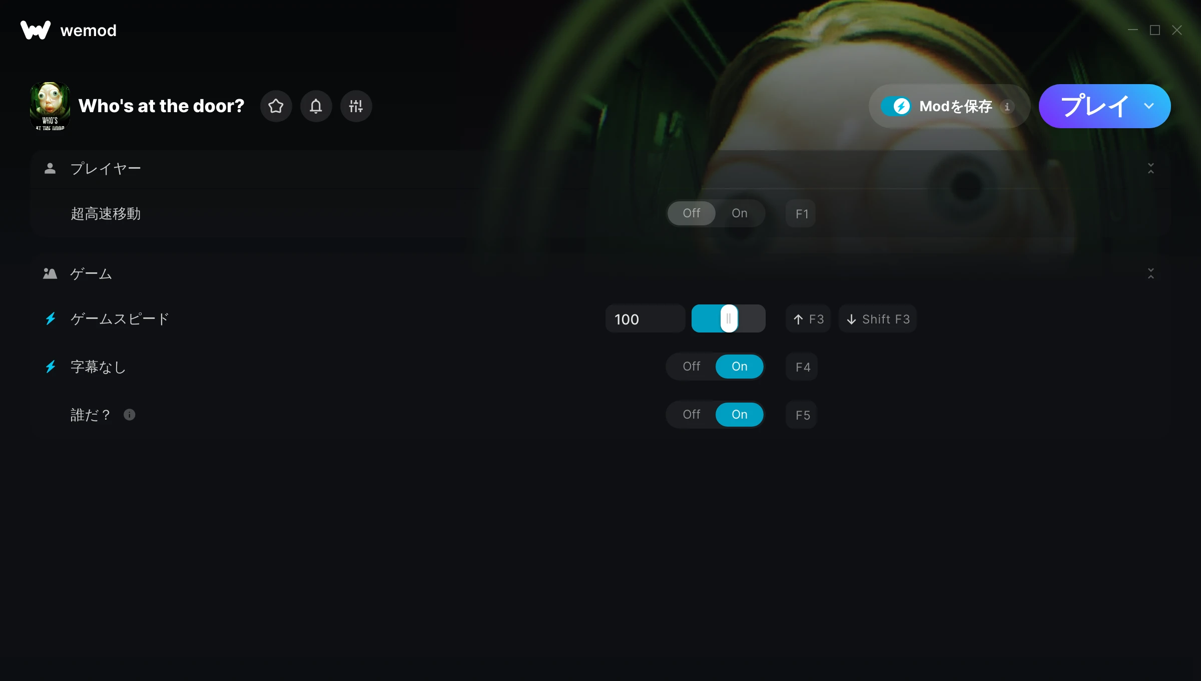 85MB Windows ...またはPCでWeModにアクセスしてアプリをダウンロード 超高速移動を入手, 移動速度乗数 & その他3件のMod for Who's at the door? with WeMod