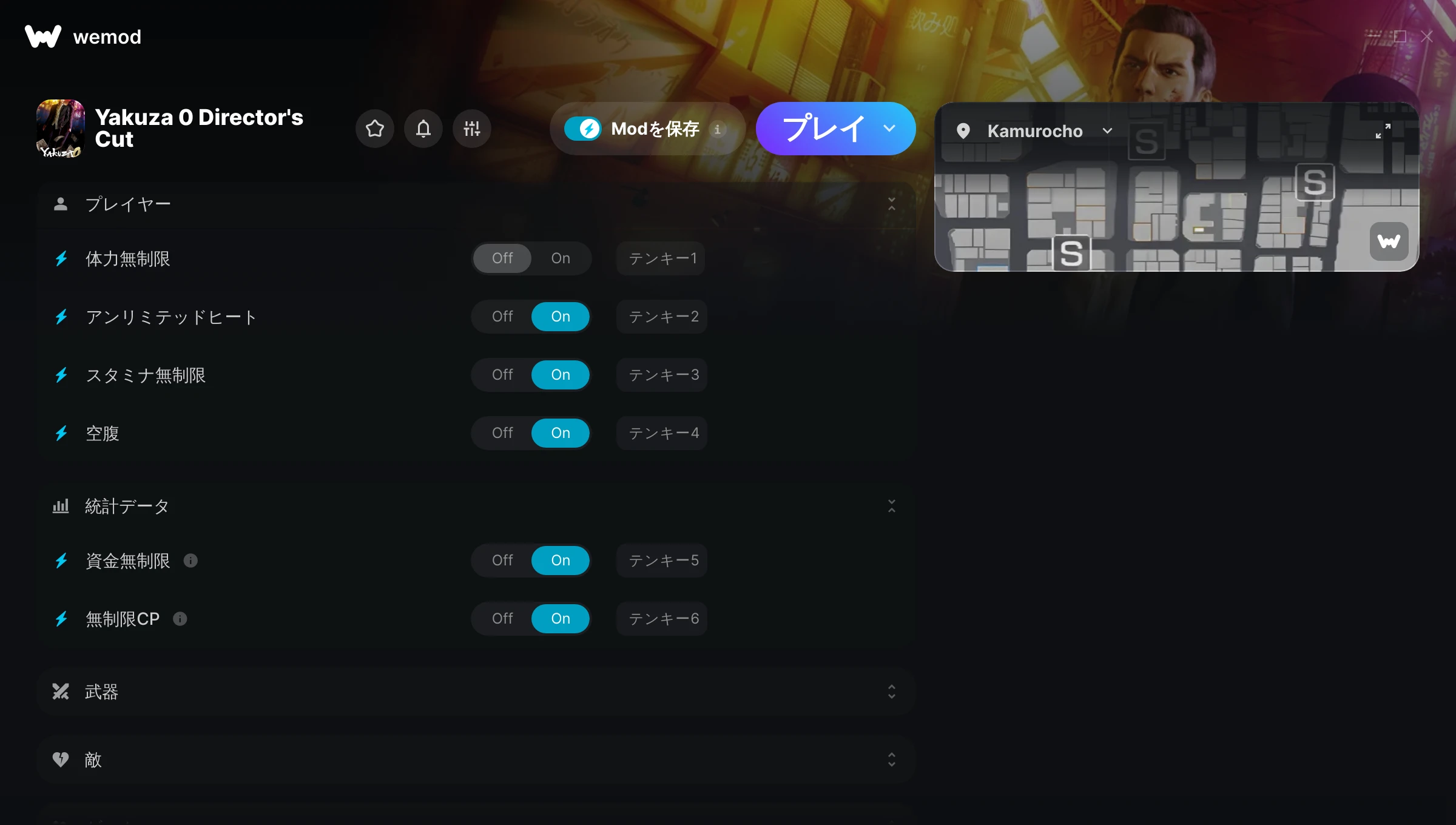 85MB Windows ...またはPCでWeModにアクセスしてアプリをダウンロード 体力無制限を入手, アンリミテッドヒート & その他10件のMod for Yakuza 0 Director's Cut with WeMod