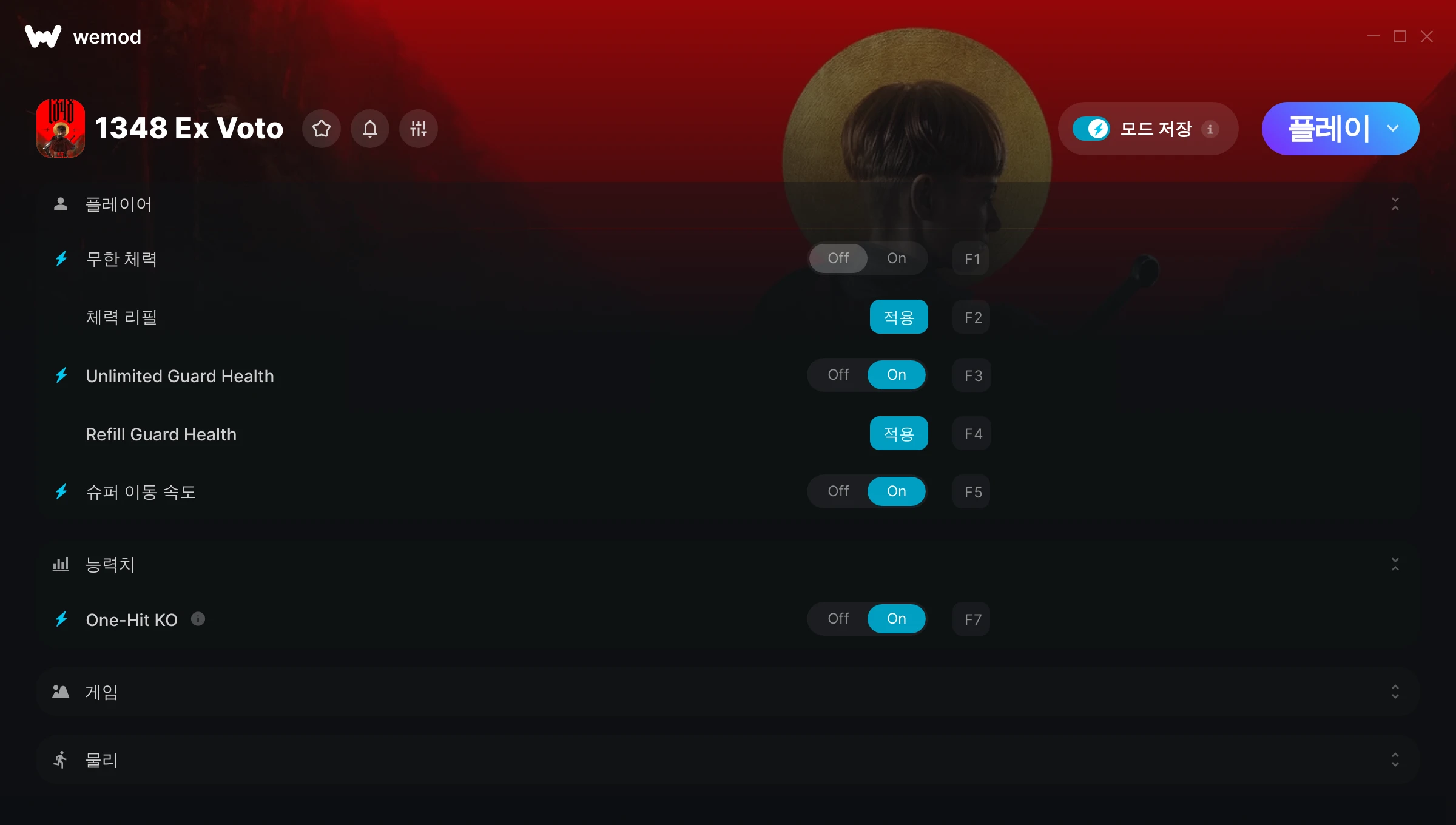 켜짐 꺼짐 무제한 체력 무제한 스태미너 모드 전환