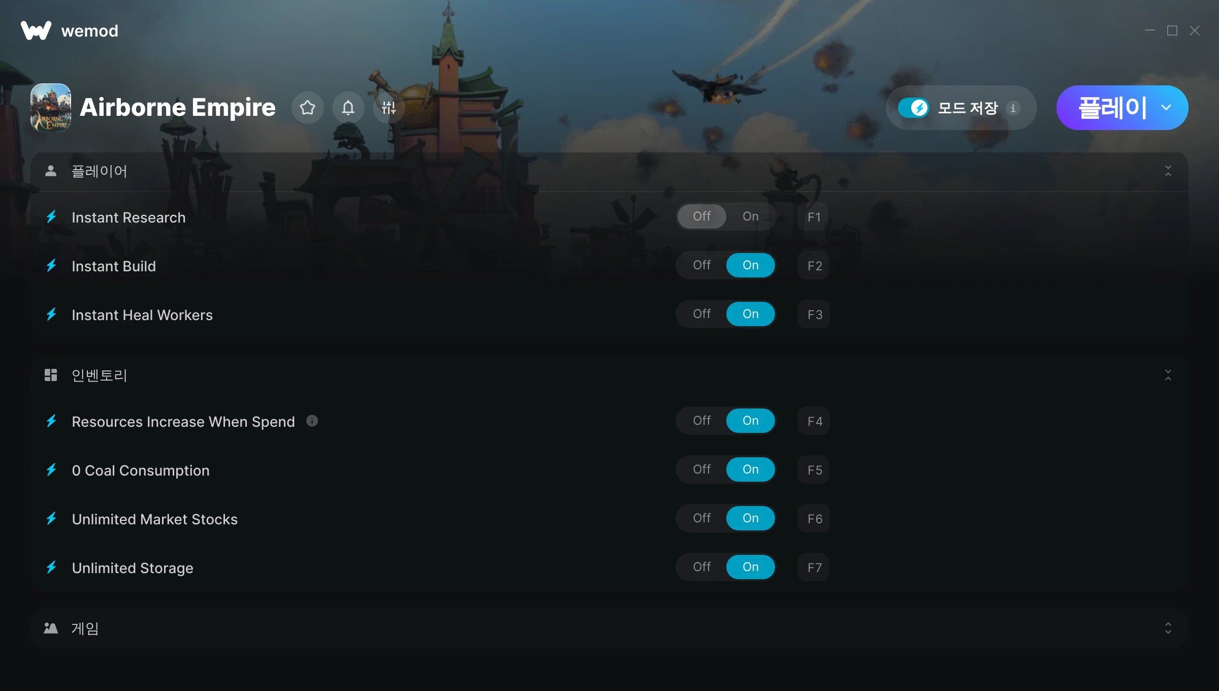 85MB Windows ...또는 PC에서 WeMod를 방문해 앱을 다운로드할 수도 있습니다 Instant Research 받기, Instant Build & 7개의 다른 모드 for Airborne Empire with WeMod