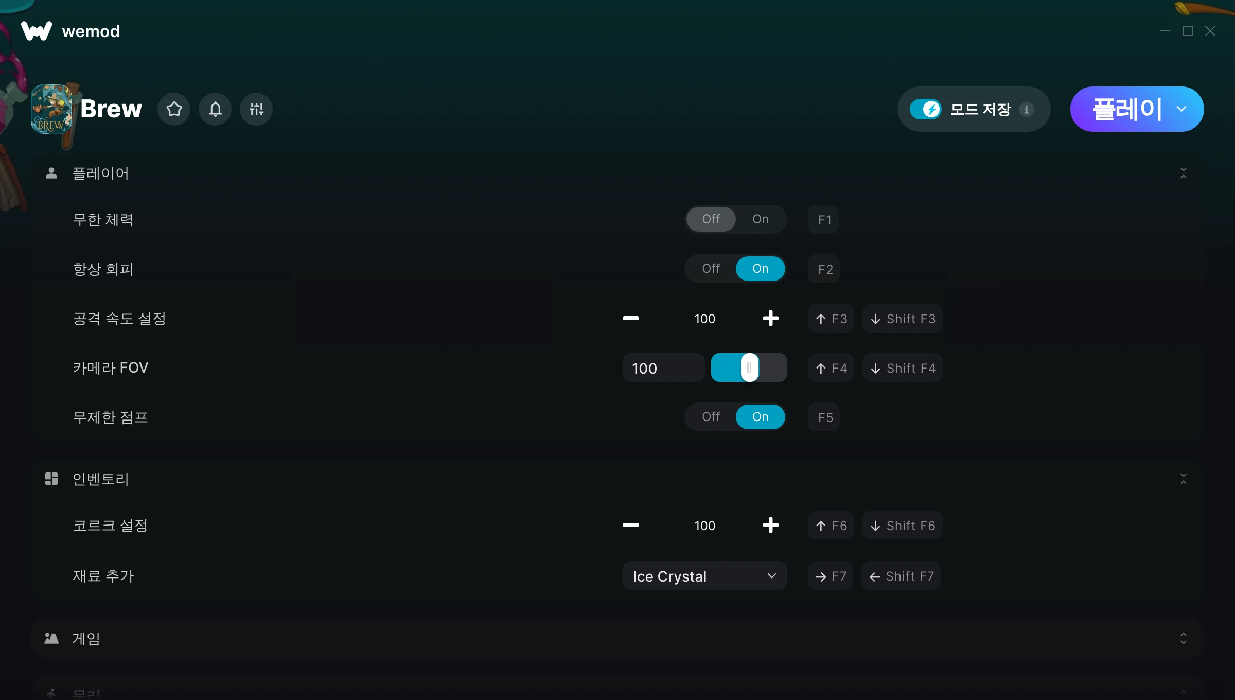 Brew에서 치트를 사용하려면 어떻게 해야 하나요?WeMod는 PC의 모든 게임을 표시합니다. 목록에서 게임을 선택하고 플레이를 누르세요. 게임을 시작하면 다양한 치트를 활성화할 수 있습니다!모드가 제 게임 버전과 호환될까요?WeMod는 고급 기술로 실행 중인 게임 버전을 탐지하고 모드 지원 여부를 표시합니다. 모드가 지원되지 않는다면 모드를 테스트해보거나 업데이트를 요청할 수 있습니다!