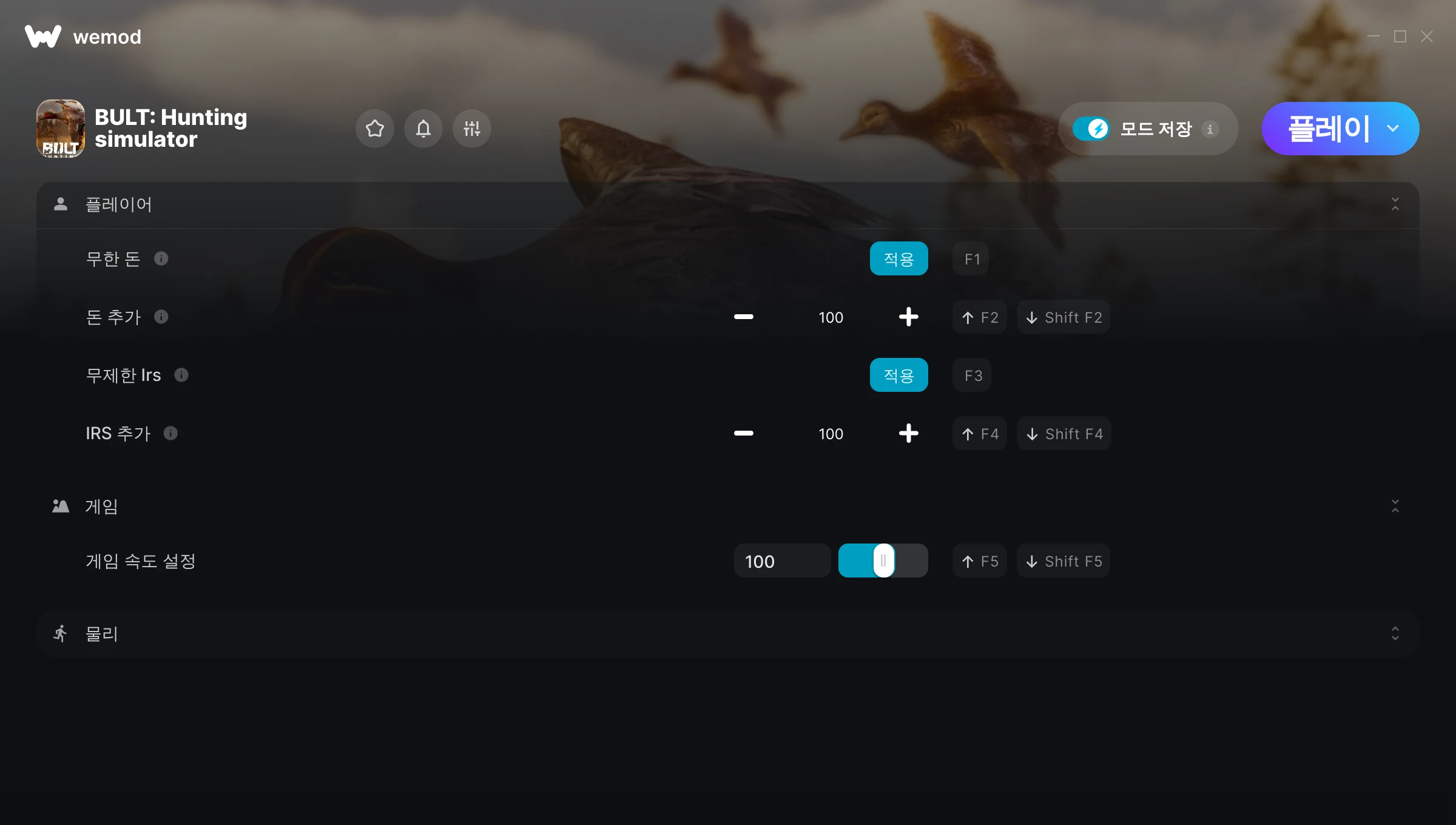 BULT: Hunting simulator에서 치트를 사용하려면 어떻게 해야 하나요?WeMod는 PC의 모든 게임을 표시합니다. 목록에서 게임을 선택하고 플레이를 누르세요. 게임을 시작하면 다양한 치트를 활성화할 수 있습니다!모드가 제 게임 버전과 호환될까요?WeMod는 고급 기술로 실행 중인 게임 버전을 탐지하고 모드 지원 여부를 표시합니다. 모드가 지원되지 않는다면 모드를 테스트해보거나 업데이트를 요청할 수 있습니다!