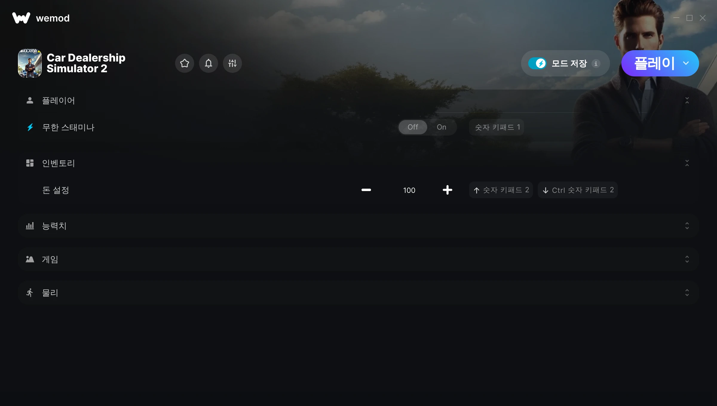 Car Dealership Simulator 2에서 치트를 사용하려면 어떻게 해야 하나요?WeMod는 PC의 모든 게임을 표시합니다. 목록에서 게임을 선택하고 플레이를 누르세요. 게임을 시작하면 다양한 치트를 활성화할 수 있습니다!모드가 제 게임 버전과 호환될까요?WeMod는 고급 기술로 실행 중인 게임 버전을 탐지하고 모드 지원 여부를 표시합니다. 모드가 지원되지 않는다면 모드를 테스트해보거나 업데이트를 요청할 수 있습니다!