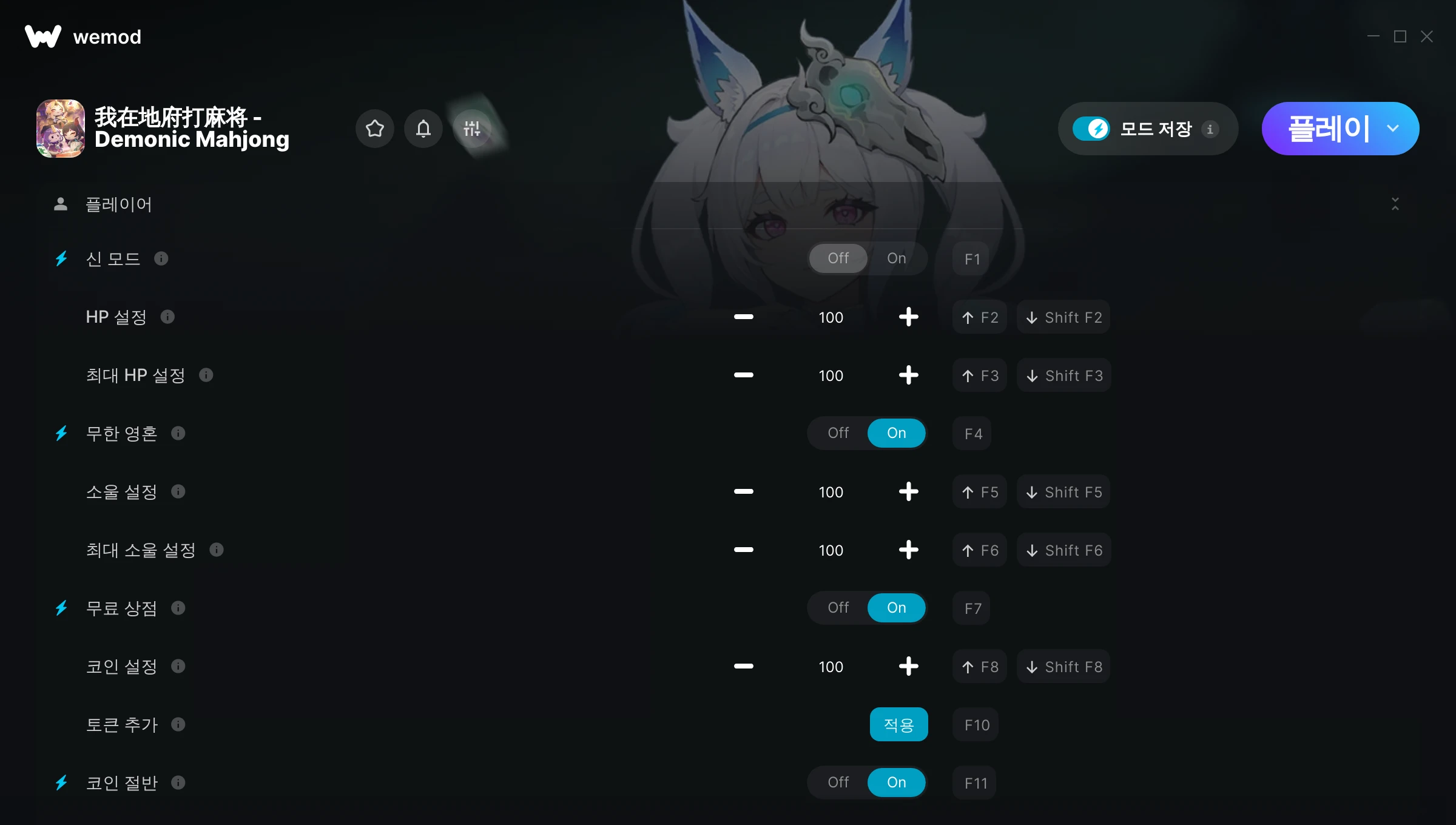 我在地府打麻将 - Demonic Mahjong에서 치트를 사용하려면 어떻게 해야 하나요?WeMod는 PC의 모든 게임을 표시합니다. 목록에서 게임을 선택하고 플레이를 누르세요. 게임을 시작하면 다양한 치트를 활성화할 수 있습니다!모드가 제 게임 버전과 호환될까요?WeMod는 고급 기술로 실행 중인 게임 버전을 탐지하고 모드 지원 여부를 표시합니다. 모드가 지원되지 않는다면 모드를 테스트해보거나 업데이트를 요청할 수 있습니다!