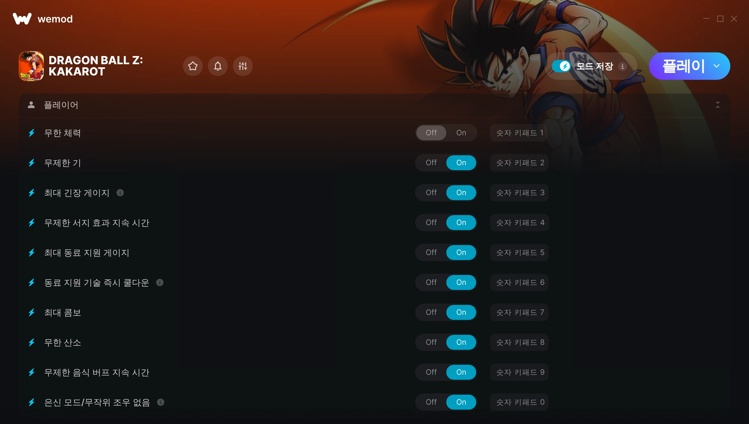 Made the game much more fun to play, couldn't grind it out to the max potential of finding every z orb for upgrading so it saves me enough time due to my limitations of playing! Thank you very much WeMod and the Developers of this mod. I'm very happy to have found you guys.