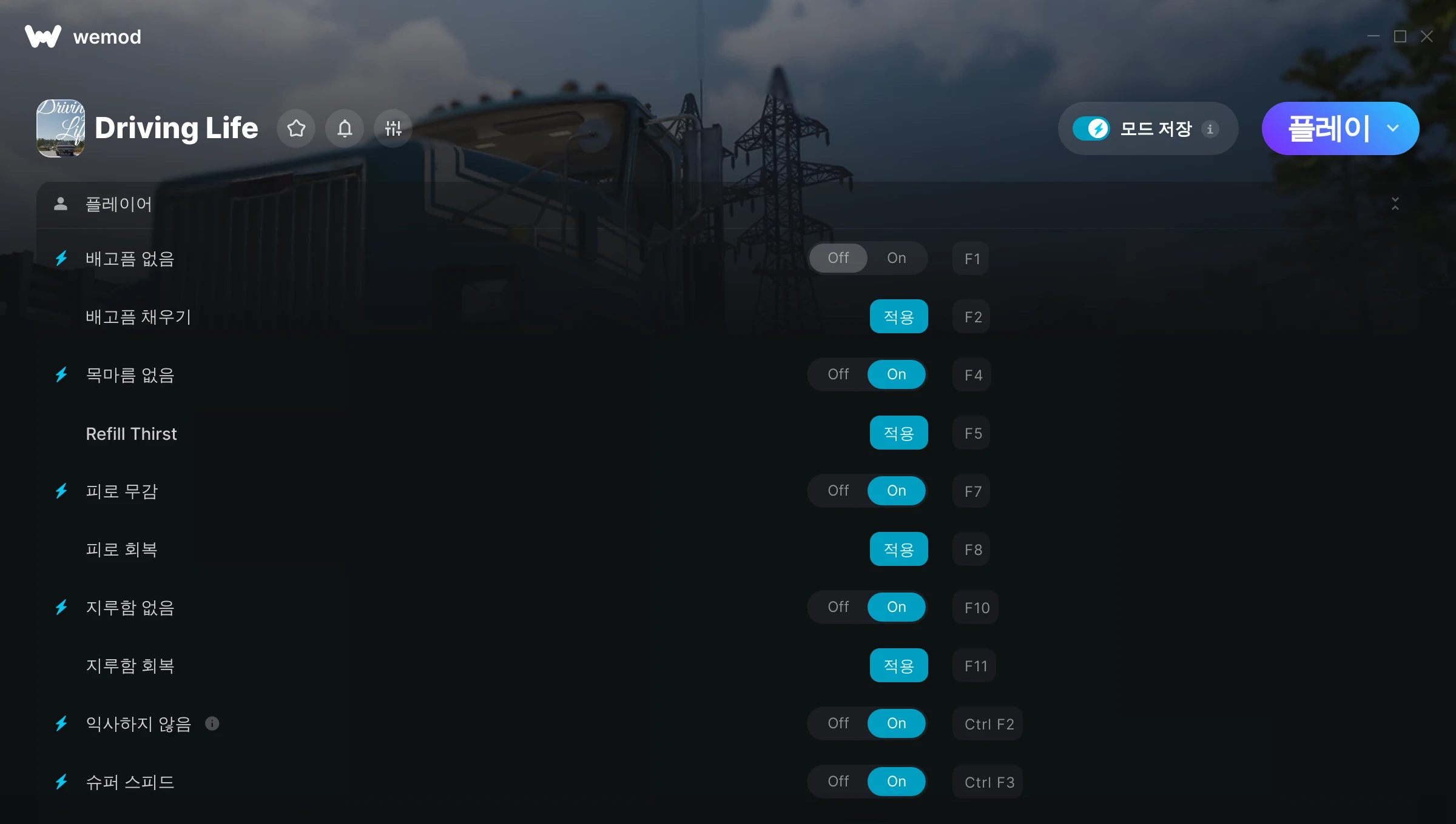 Driving Life에서 치트를 사용하려면 어떻게 해야 하나요?WeMod는 PC의 모든 게임을 표시합니다. 목록에서 게임을 선택하고 플레이를 누르세요. 게임을 시작하면 다양한 치트를 활성화할 수 있습니다!모드가 제 게임 버전과 호환될까요?WeMod는 고급 기술로 실행 중인 게임 버전을 탐지하고 모드 지원 여부를 표시합니다. 모드가 지원되지 않는다면 모드를 테스트해보거나 업데이트를 요청할 수 있습니다!