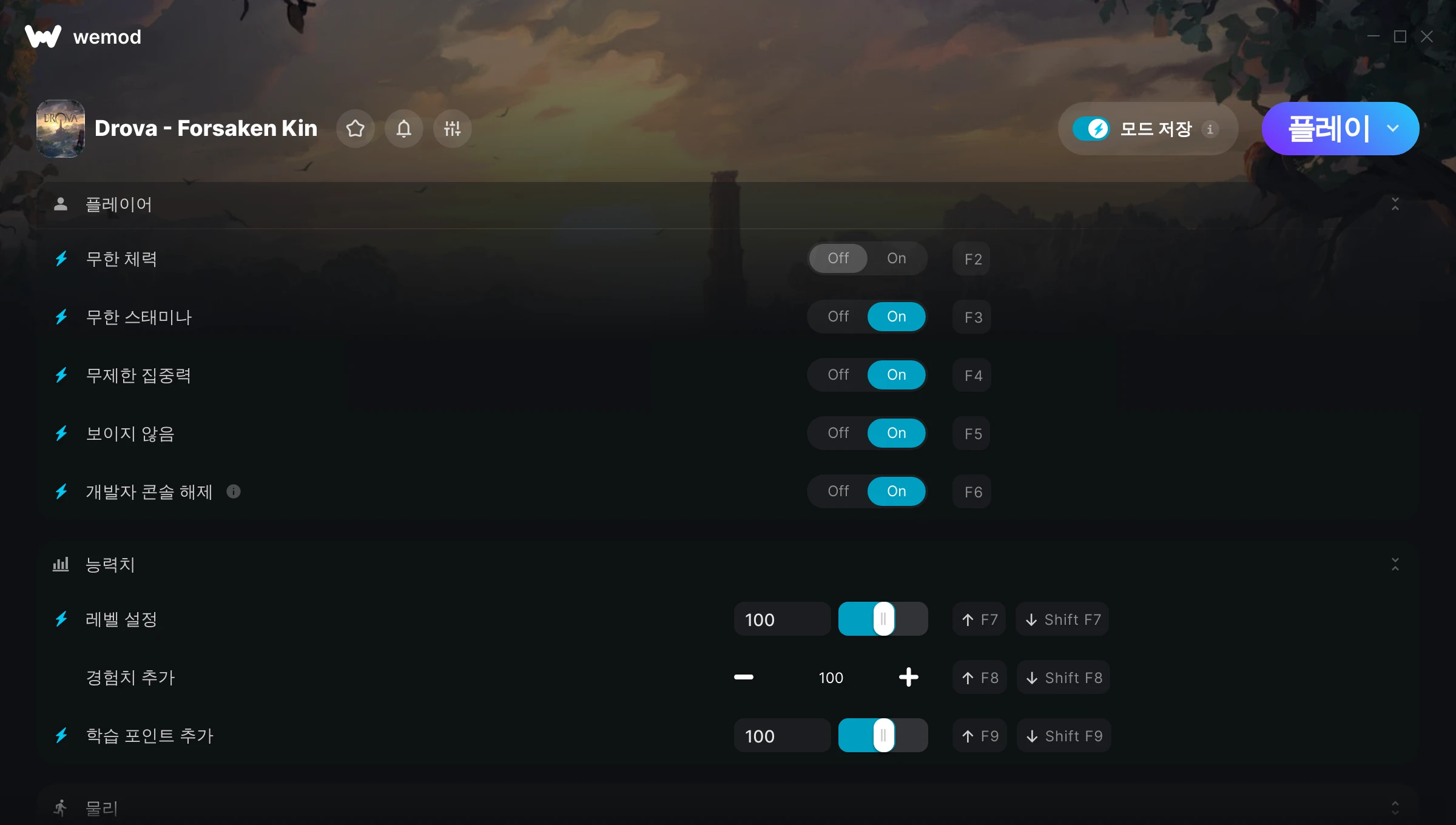 Drova - Forsaken Kin에서 치트를 사용하려면 어떻게 해야 하나요?WeMod는 PC의 모든 게임을 표시합니다. 목록에서 게임을 선택하고 플레이를 누르세요. 게임을 시작하면 다양한 치트를 활성화할 수 있습니다!모드가 제 게임 버전과 호환될까요?WeMod는 고급 기술로 실행 중인 게임 버전을 탐지하고 모드 지원 여부를 표시합니다. 모드가 지원되지 않는다면 모드를 테스트해보거나 업데이트를 요청할 수 있습니다!