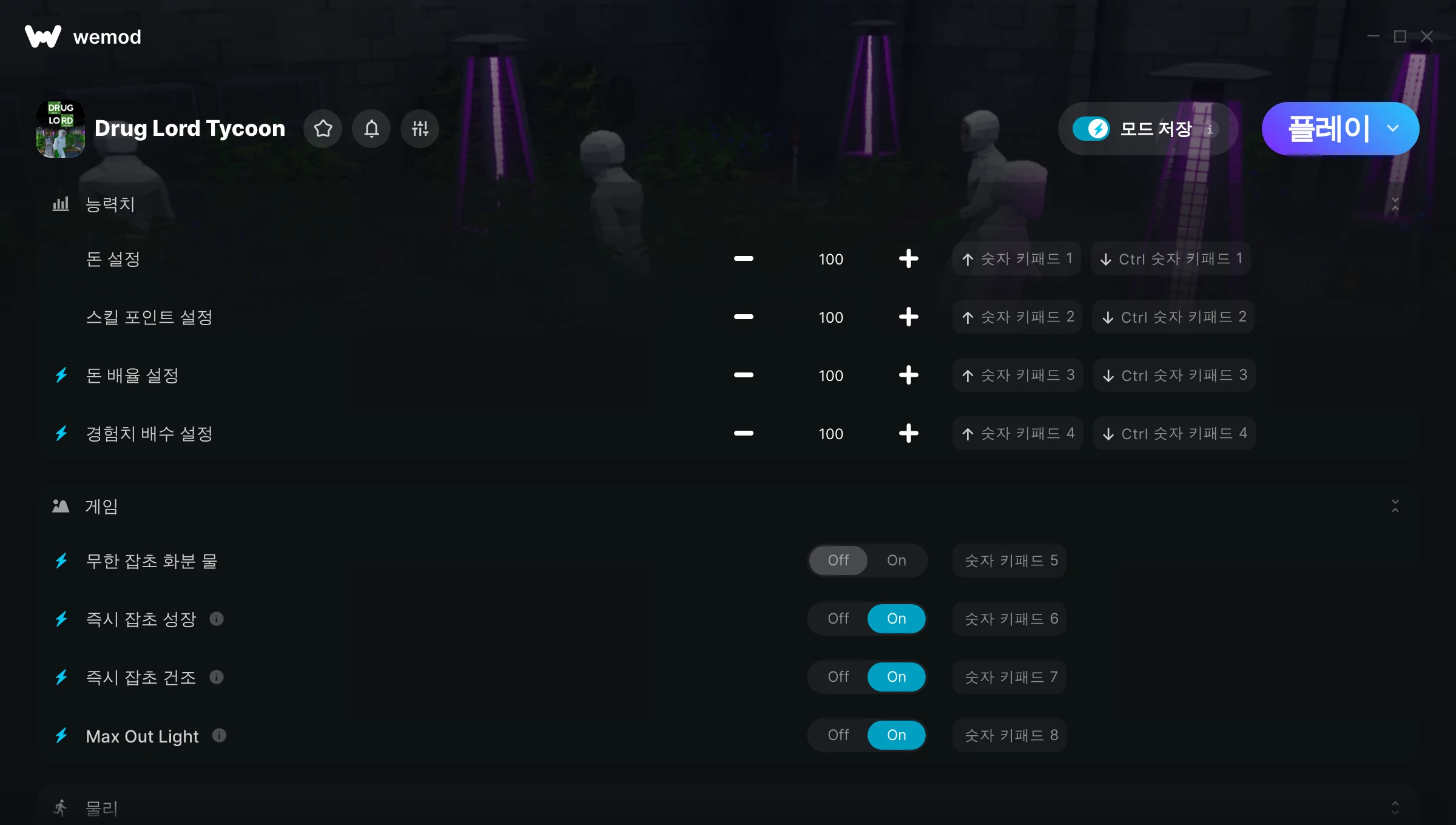 Drug Lord Tycoon에서 치트를 사용하려면 어떻게 해야 하나요?WeMod는 PC의 모든 게임을 표시합니다. 목록에서 게임을 선택하고 플레이를 누르세요. 게임을 시작하면 다양한 치트를 활성화할 수 있습니다!모드가 제 게임 버전과 호환될까요?WeMod는 고급 기술로 실행 중인 게임 버전을 탐지하고 모드 지원 여부를 표시합니다. 모드가 지원되지 않는다면 모드를 테스트해보거나 업데이트를 요청할 수 있습니다!