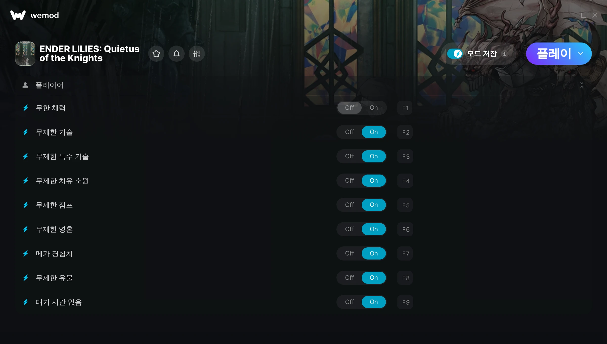 was looking for an ender lilies trainer since I'm getting too old to beat hard bosses these days and wemod was the only one that had an amazing one for free. thanks a billion!