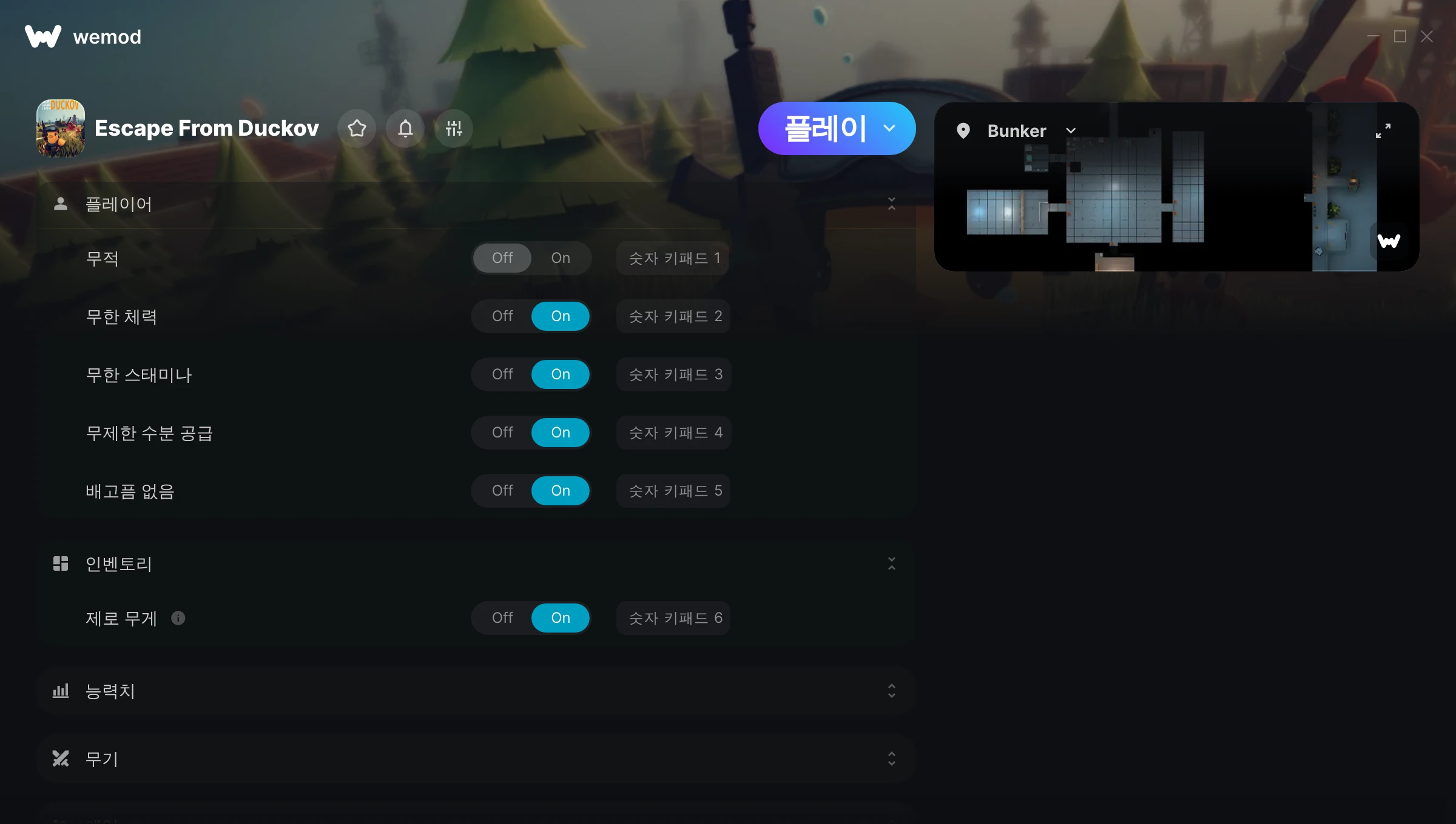 켜짐 꺼짐 무제한 체력 무제한 스태미너 모드 전환