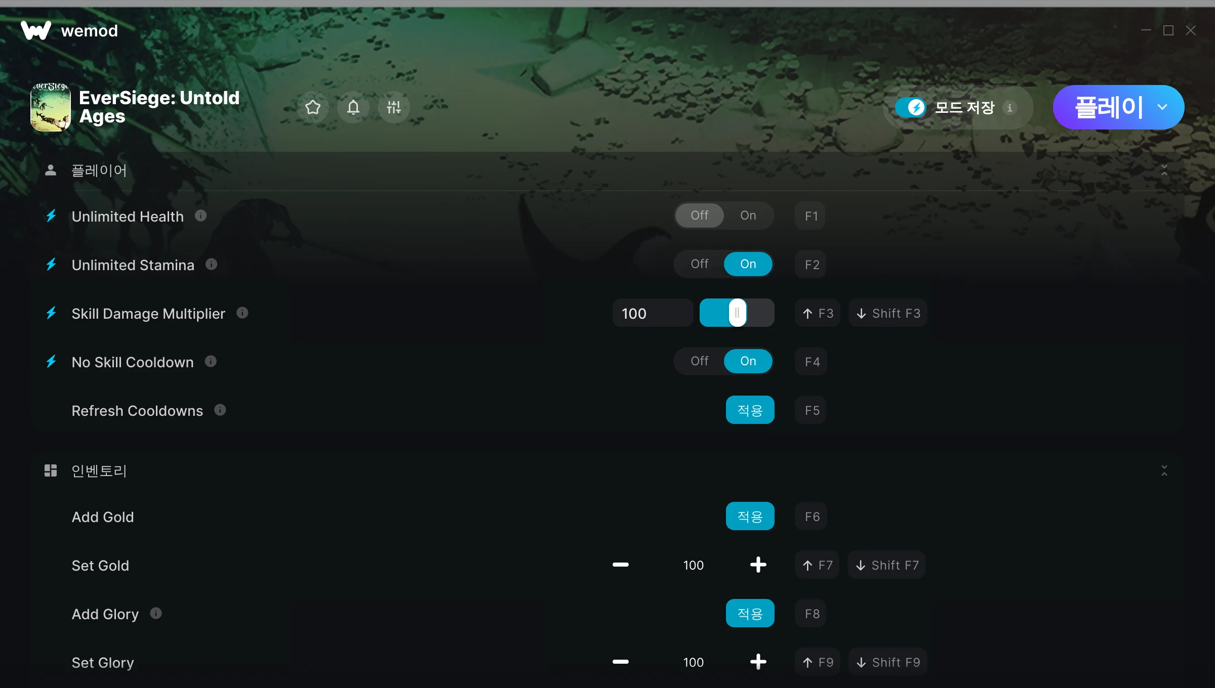 EverSiege: Untold Ages에서 치트를 사용하려면 어떻게 해야 하나요?WeMod는 PC의 모든 게임을 표시합니다. 목록에서 게임을 선택하고 플레이를 누르세요. 게임을 시작하면 다양한 치트를 활성화할 수 있습니다!모드가 제 게임 버전과 호환될까요?WeMod는 고급 기술로 실행 중인 게임 버전을 탐지하고 모드 지원 여부를 표시합니다. 모드가 지원되지 않는다면 모드를 테스트해보거나 업데이트를 요청할 수 있습니다!