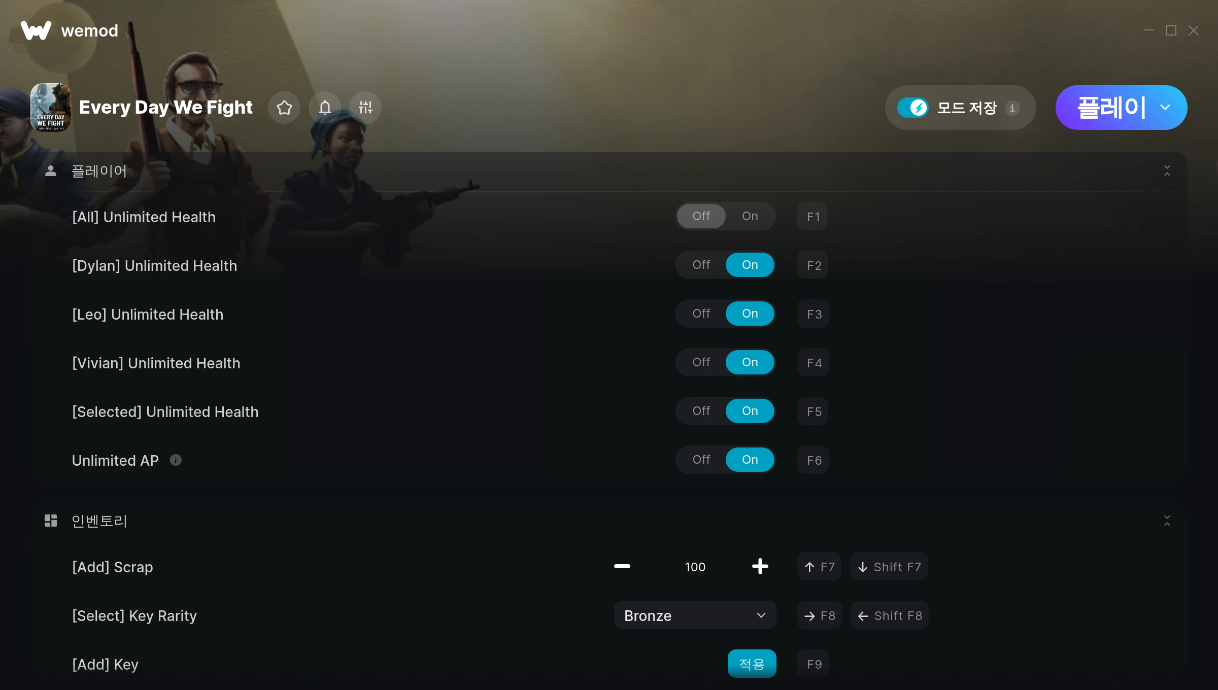 85MB Windows ...또는 PC에서 WeMod를 방문해 앱을 다운로드할 수도 있습니다 [전체] 무제한 체력 받기, [Dylan] 무제한 체력 & 15개의 다른 모드 for Every Day We Fight with WeMod