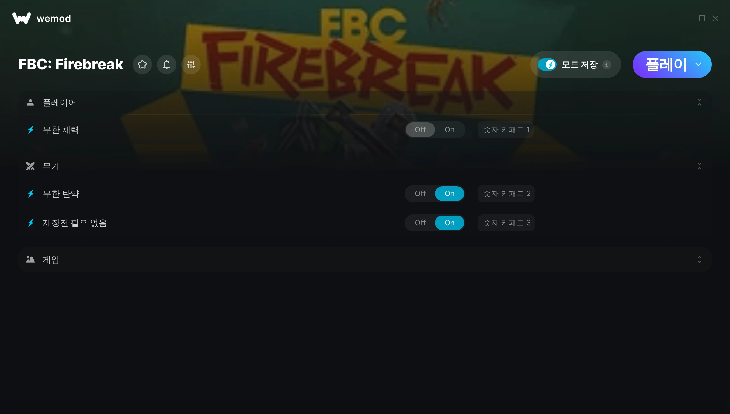 85MB Windows ...또는 PC에서 WeMod를 방문해 앱을 다운로드할 수도 있습니다 무한 체력 받기, 무한 탄약 & 2개의 다른 모드 for FBC: Firebreak with WeMod