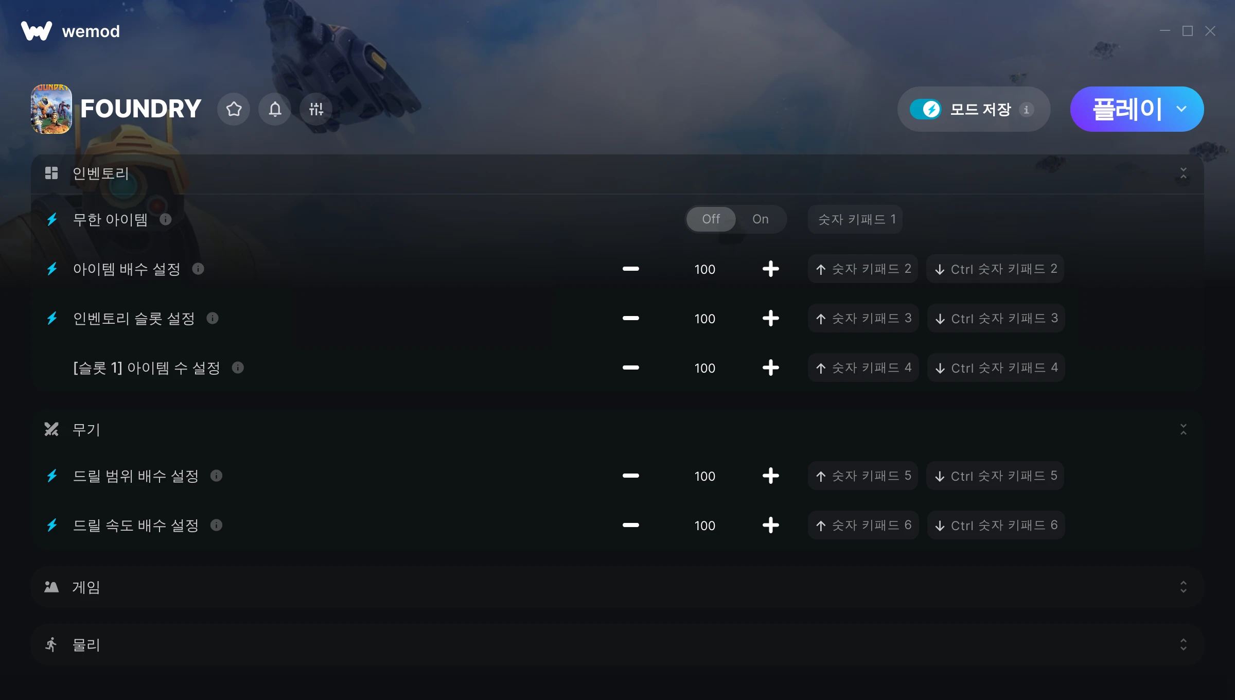 FOUNDRY에서 치트를 사용하려면 어떻게 해야 하나요?WeMod는 PC의 모든 게임을 표시합니다. 목록에서 게임을 선택하고 플레이를 누르세요. 게임을 시작하면 다양한 치트를 활성화할 수 있습니다!모드가 제 게임 버전과 호환될까요?WeMod는 고급 기술로 실행 중인 게임 버전을 탐지하고 모드 지원 여부를 표시합니다. 모드가 지원되지 않는다면 모드를 테스트해보거나 업데이트를 요청할 수 있습니다!
