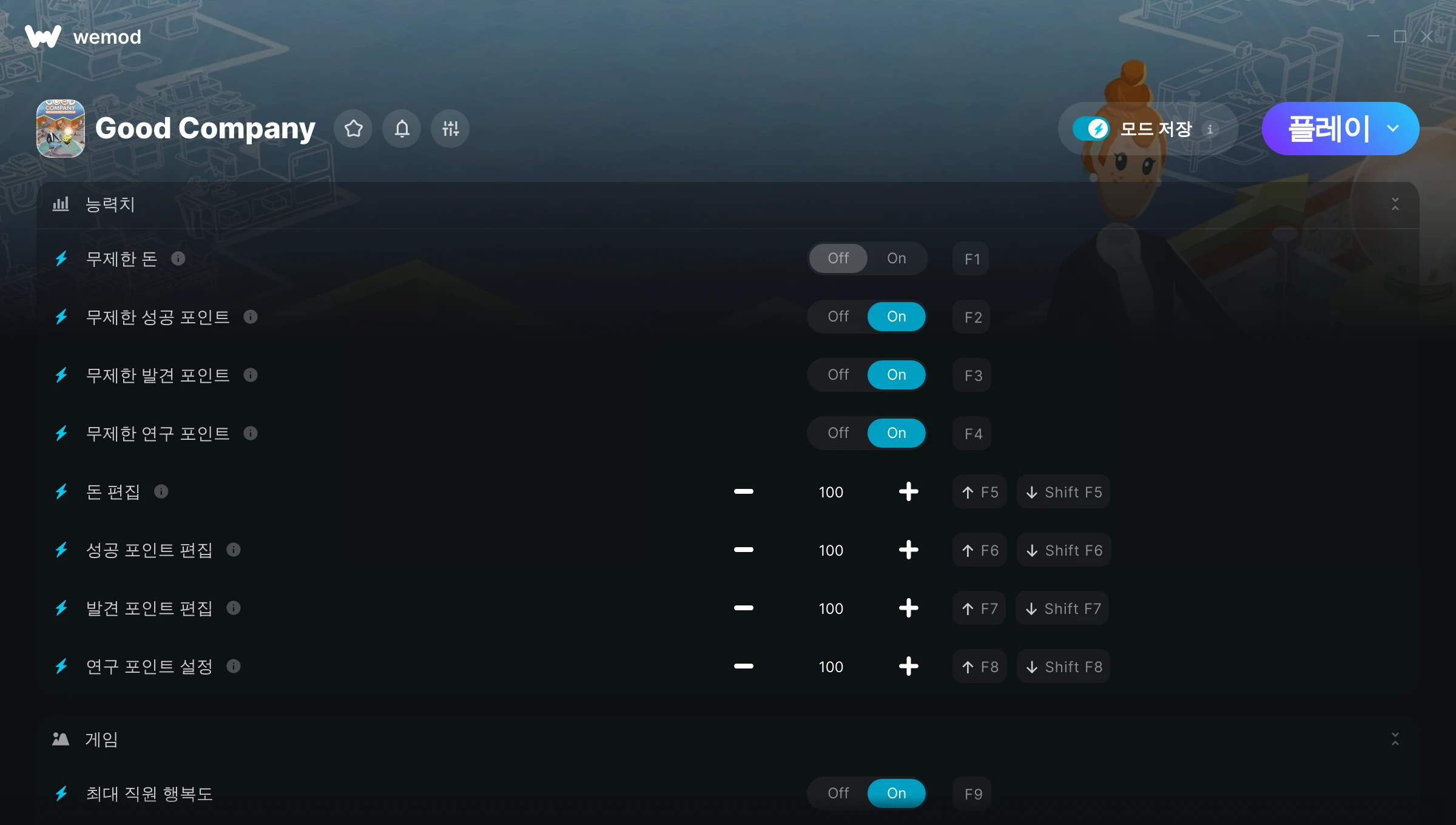 I became a company dictator that made everybody worked until they dropped. I can't thank Wemod and it's modders enough.