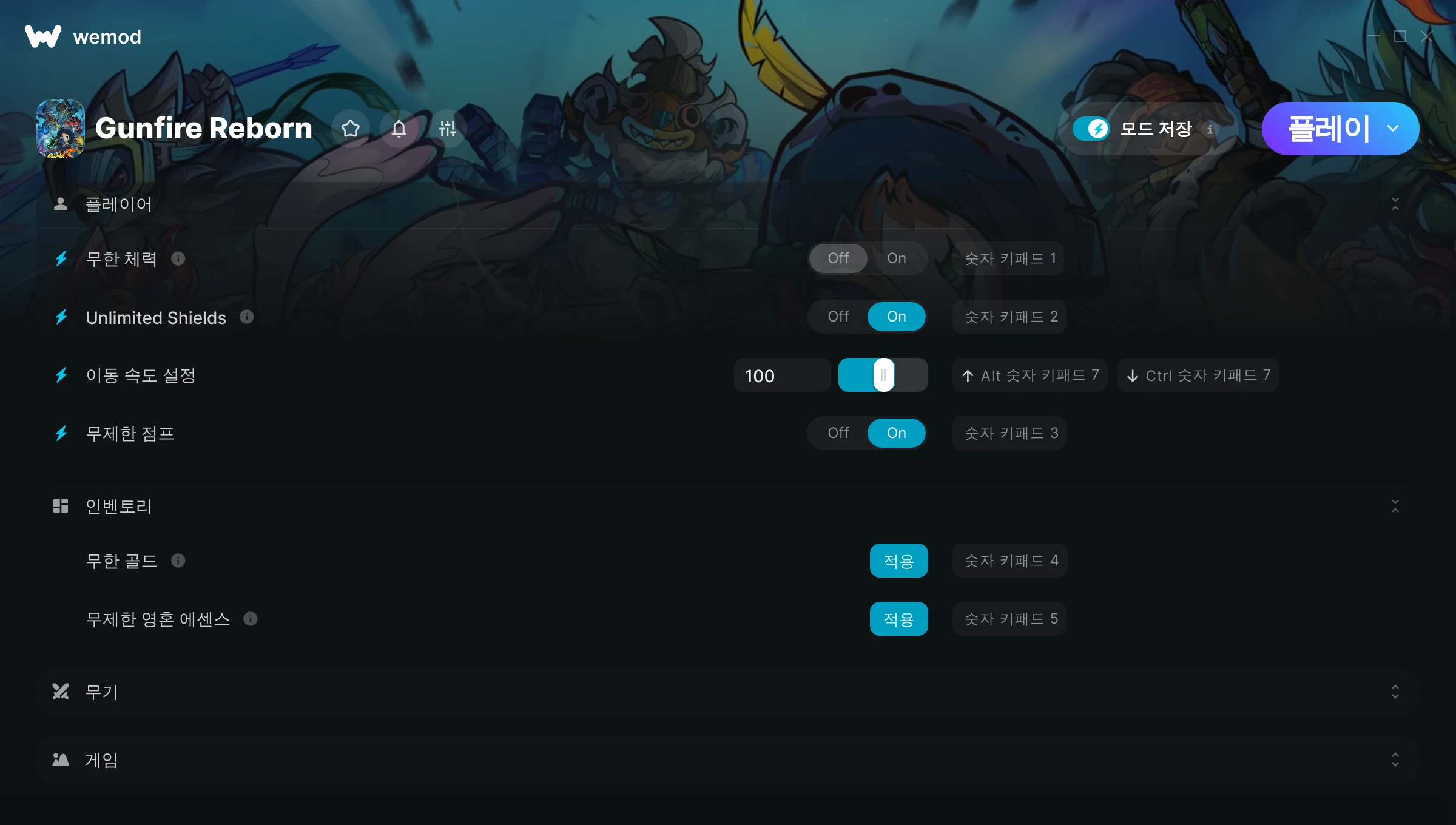 85MB Windows ...또는 PC에서 WeMod를 방문해 앱을 다운로드할 수도 있습니다 무한 체력 받기, 무제한 방패 & 6개의 다른 모드 for Gunfire Reborn with WeMod