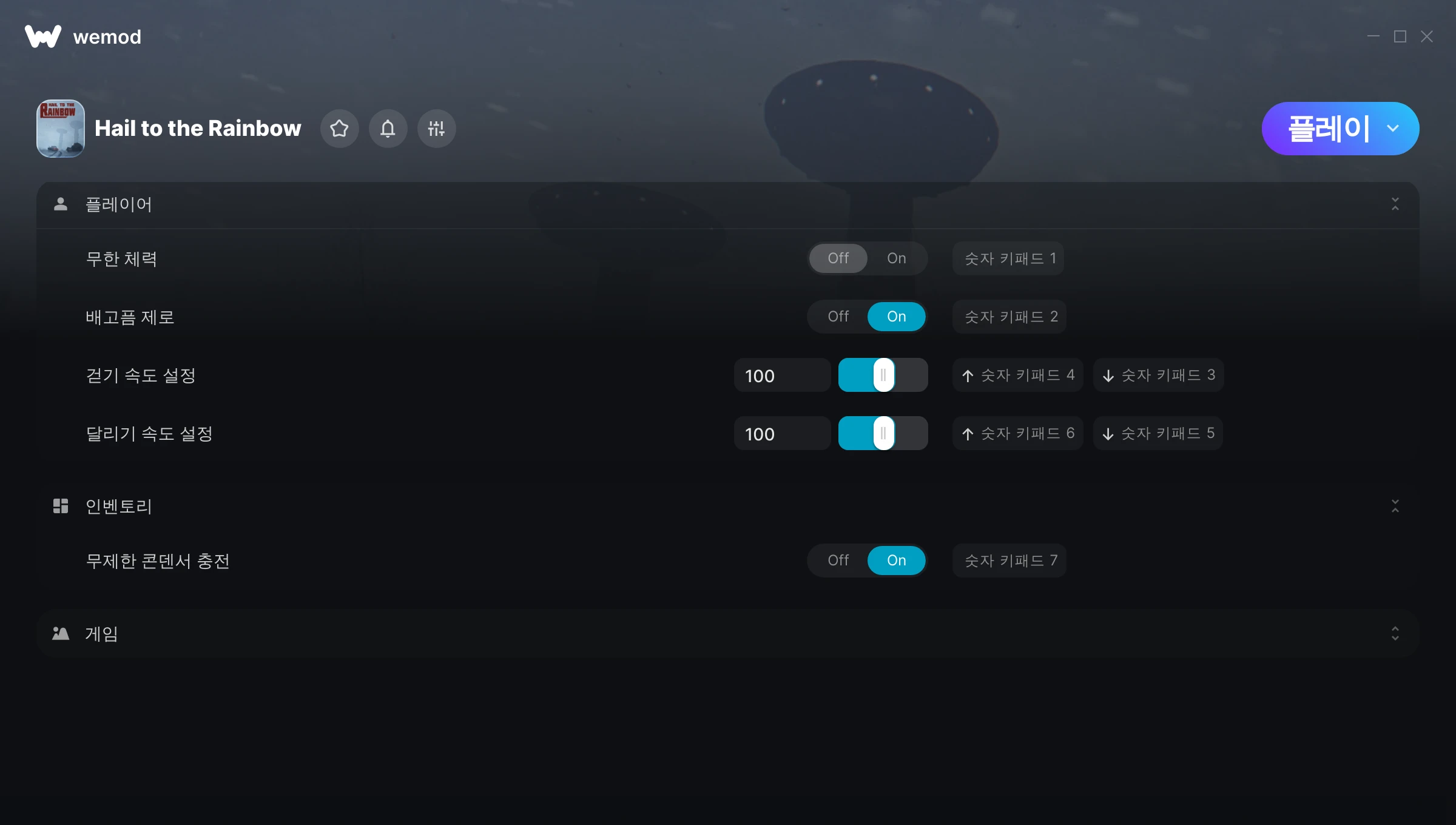 켜짐 꺼짐 무제한 체력 무제한 스태미너 모드 전환