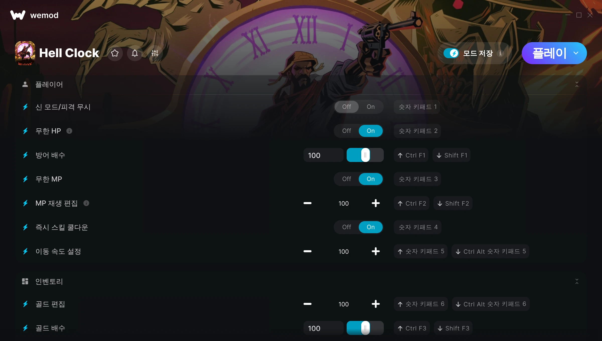 Hell Clock에서 치트를 사용하려면 어떻게 해야 하나요?WeMod는 PC의 모든 게임을 표시합니다. 목록에서 게임을 선택하고 플레이를 누르세요. 게임을 시작하면 다양한 치트를 활성화할 수 있습니다!모드가 제 게임 버전과 호환될까요?WeMod는 고급 기술로 실행 중인 게임 버전을 탐지하고 모드 지원 여부를 표시합니다. 모드가 지원되지 않는다면 모드를 테스트해보거나 업데이트를 요청할 수 있습니다!