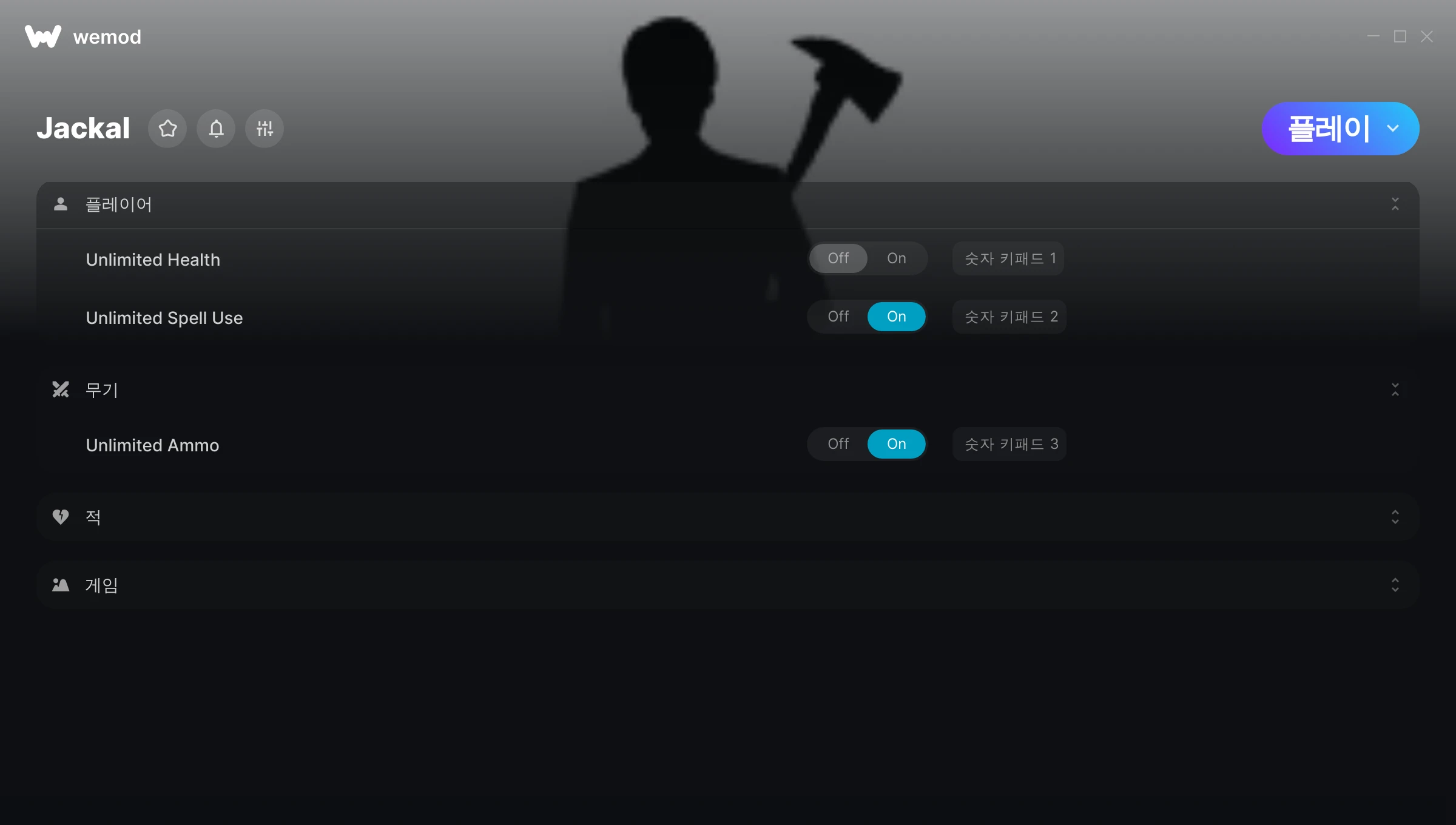 Jackal에서 치트를 사용하려면 어떻게 해야 하나요?WeMod는 PC의 모든 게임을 표시합니다. 목록에서 게임을 선택하고 플레이를 누르세요. 게임을 시작하면 다양한 치트를 활성화할 수 있습니다!모드가 제 게임 버전과 호환될까요?WeMod는 고급 기술로 실행 중인 게임 버전을 탐지하고 모드 지원 여부를 표시합니다. 모드가 지원되지 않는다면 모드를 테스트해보거나 업데이트를 요청할 수 있습니다!