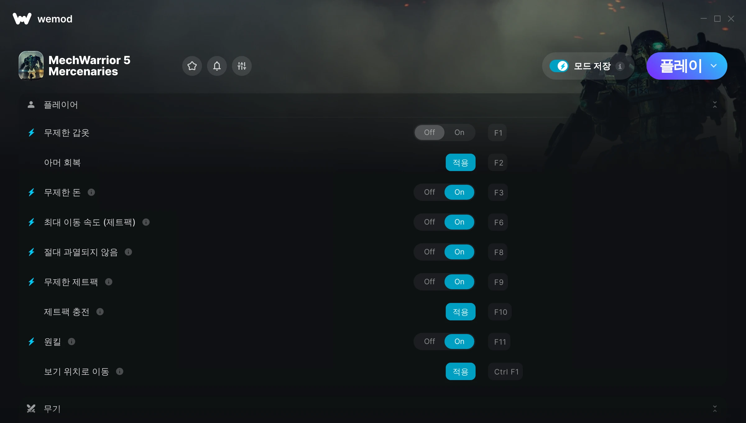 This trainer has made mechwarrior 5 really fun to play cause I've already beaten it on console so using prevented me from having to do everything all over again so a big thanks to you!!!