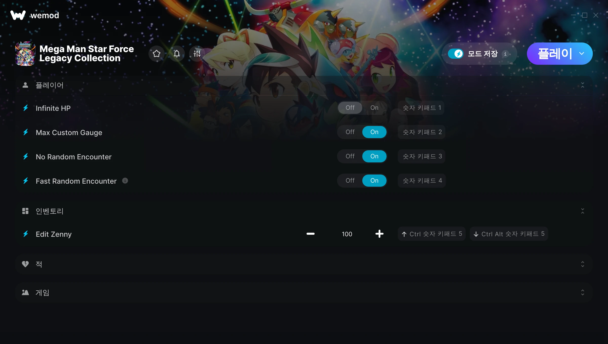 Mega Man Star Force Legacy Collection에서 치트를 사용하려면 어떻게 해야 하나요?WeMod는 PC의 모든 게임을 표시합니다. 목록에서 게임을 선택하고 플레이를 누르세요. 게임을 시작하면 다양한 치트를 활성화할 수 있습니다!모드가 제 게임 버전과 호환될까요?WeMod는 고급 기술로 실행 중인 게임 버전을 탐지하고 모드 지원 여부를 표시합니다. 모드가 지원되지 않는다면 모드를 테스트해보거나 업데이트를 요청할 수 있습니다!