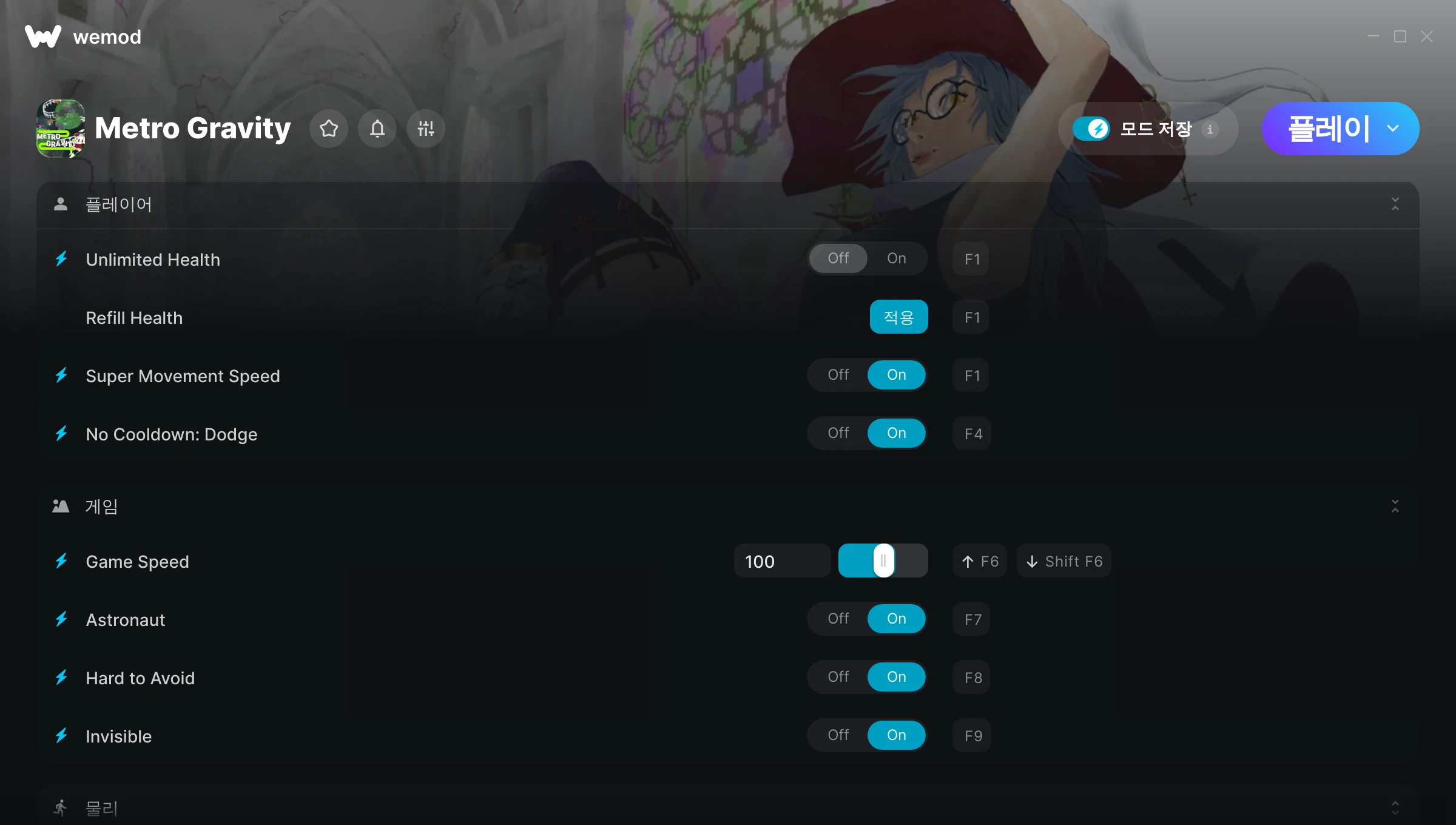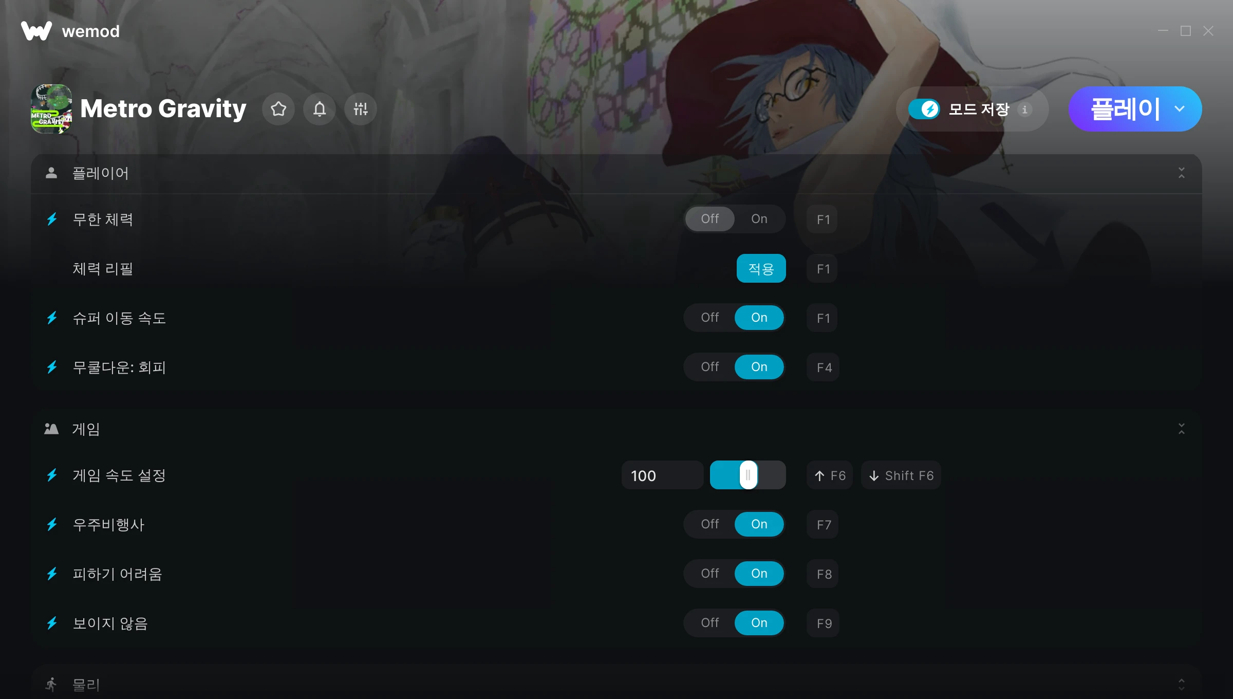 Metro Gravity에서 치트를 사용하려면 어떻게 해야 하나요?WeMod는 PC의 모든 게임을 표시합니다. 목록에서 게임을 선택하고 플레이를 누르세요. 게임을 시작하면 다양한 치트를 활성화할 수 있습니다!모드가 제 게임 버전과 호환될까요?WeMod는 고급 기술로 실행 중인 게임 버전을 탐지하고 모드 지원 여부를 표시합니다. 모드가 지원되지 않는다면 모드를 테스트해보거나 업데이트를 요청할 수 있습니다!