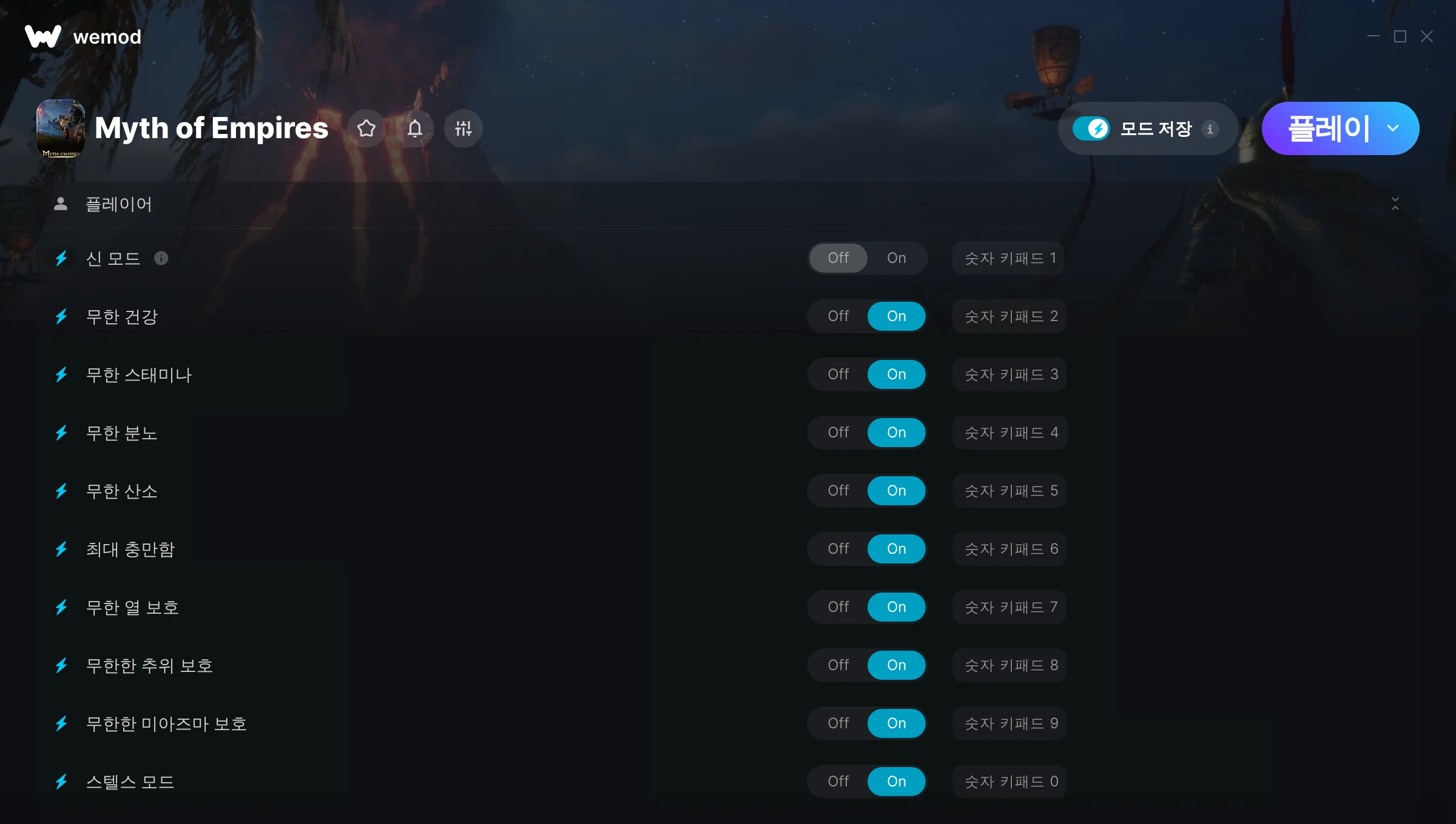 Myth of Empires에서 치트를 사용하려면 어떻게 해야 하나요?WeMod는 PC의 모든 게임을 표시합니다. 목록에서 게임을 선택하고 플레이를 누르세요. 게임을 시작하면 다양한 치트를 활성화할 수 있습니다!모드가 제 게임 버전과 호환될까요?WeMod는 고급 기술로 실행 중인 게임 버전을 탐지하고 모드 지원 여부를 표시합니다. 모드가 지원되지 않는다면 모드를 테스트해보거나 업데이트를 요청할 수 있습니다!