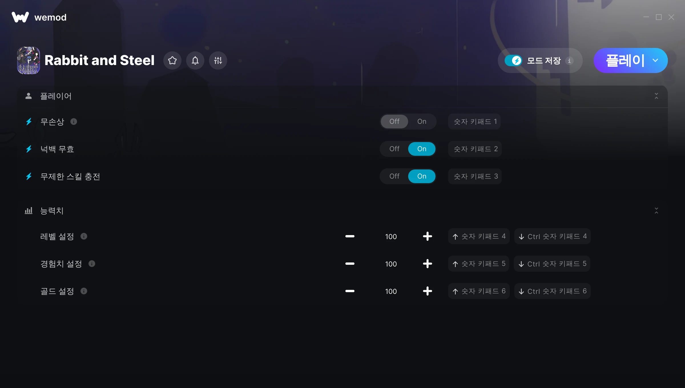 Rabbit and Steel에서 치트를 사용하려면 어떻게 해야 하나요?WeMod는 PC의 모든 게임을 표시합니다. 목록에서 게임을 선택하고 플레이를 누르세요. 게임을 시작하면 다양한 치트를 활성화할 수 있습니다!모드가 제 게임 버전과 호환될까요?WeMod는 고급 기술로 실행 중인 게임 버전을 탐지하고 모드 지원 여부를 표시합니다. 모드가 지원되지 않는다면 모드를 테스트해보거나 업데이트를 요청할 수 있습니다!
