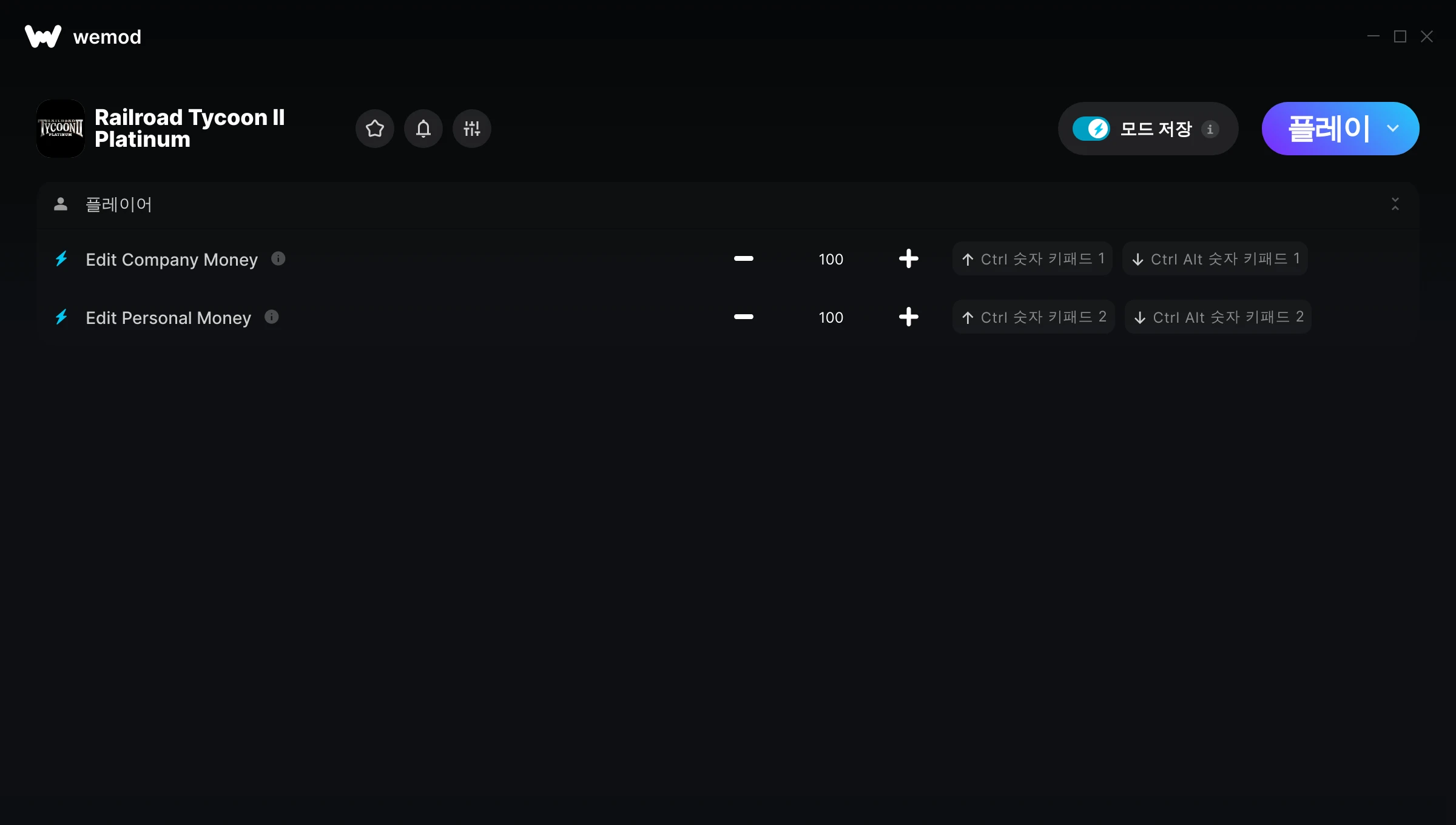 Railroad Tycoon II Platinum에서 치트를 사용하려면 어떻게 해야 하나요?WeMod는 PC의 모든 게임을 표시합니다. 목록에서 게임을 선택하고 플레이를 누르세요. 게임을 시작하면 다양한 치트를 활성화할 수 있습니다!모드가 제 게임 버전과 호환될까요?WeMod는 고급 기술로 실행 중인 게임 버전을 탐지하고 모드 지원 여부를 표시합니다. 모드가 지원되지 않는다면 모드를 테스트해보거나 업데이트를 요청할 수 있습니다!