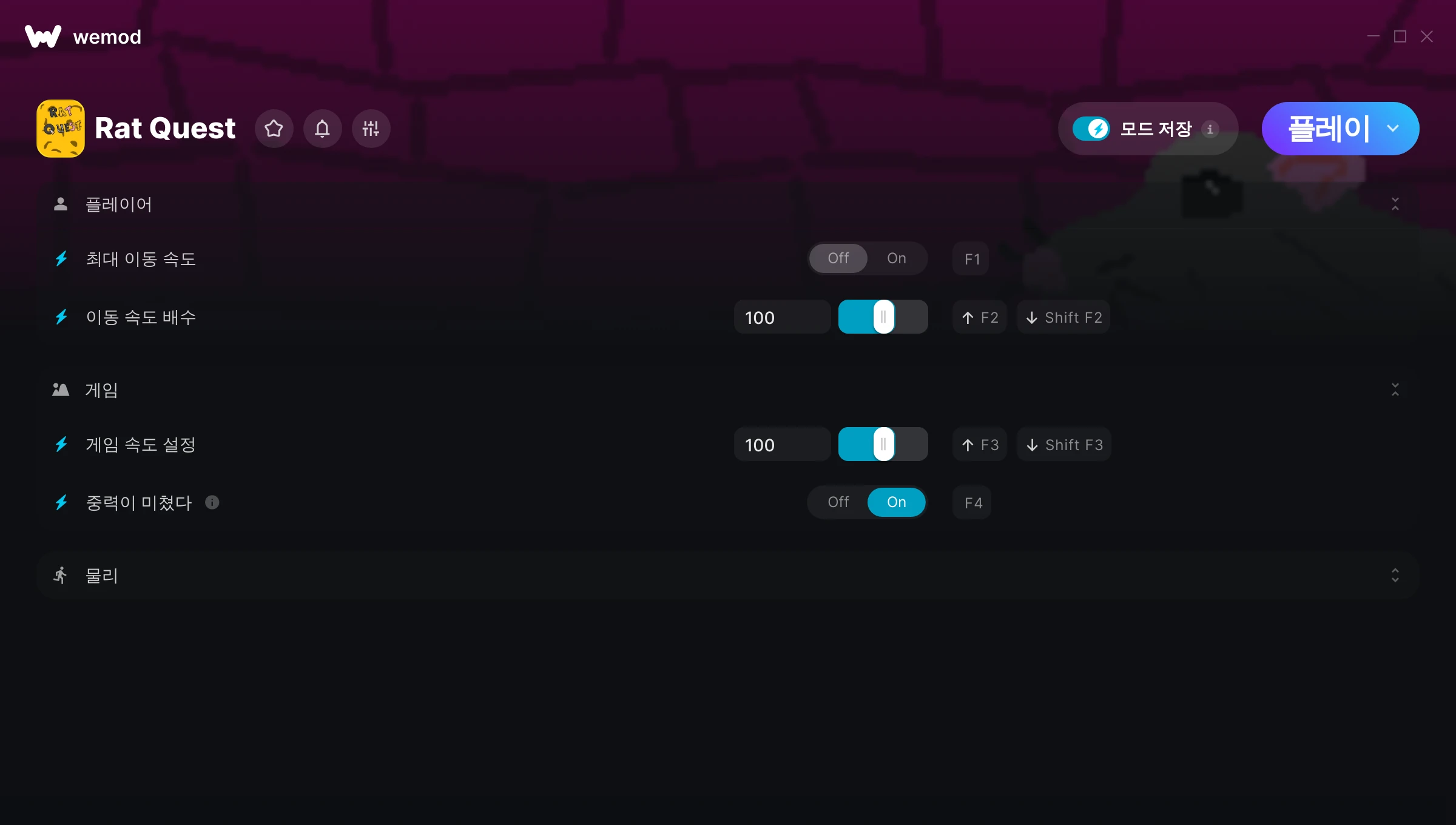 Rat Quest에서 치트를 사용하려면 어떻게 해야 하나요?WeMod는 PC의 모든 게임을 표시합니다. 목록에서 게임을 선택하고 플레이를 누르세요. 게임을 시작하면 다양한 치트를 활성화할 수 있습니다!모드가 제 게임 버전과 호환될까요?WeMod는 고급 기술로 실행 중인 게임 버전을 탐지하고 모드 지원 여부를 표시합니다. 모드가 지원되지 않는다면 모드를 테스트해보거나 업데이트를 요청할 수 있습니다!