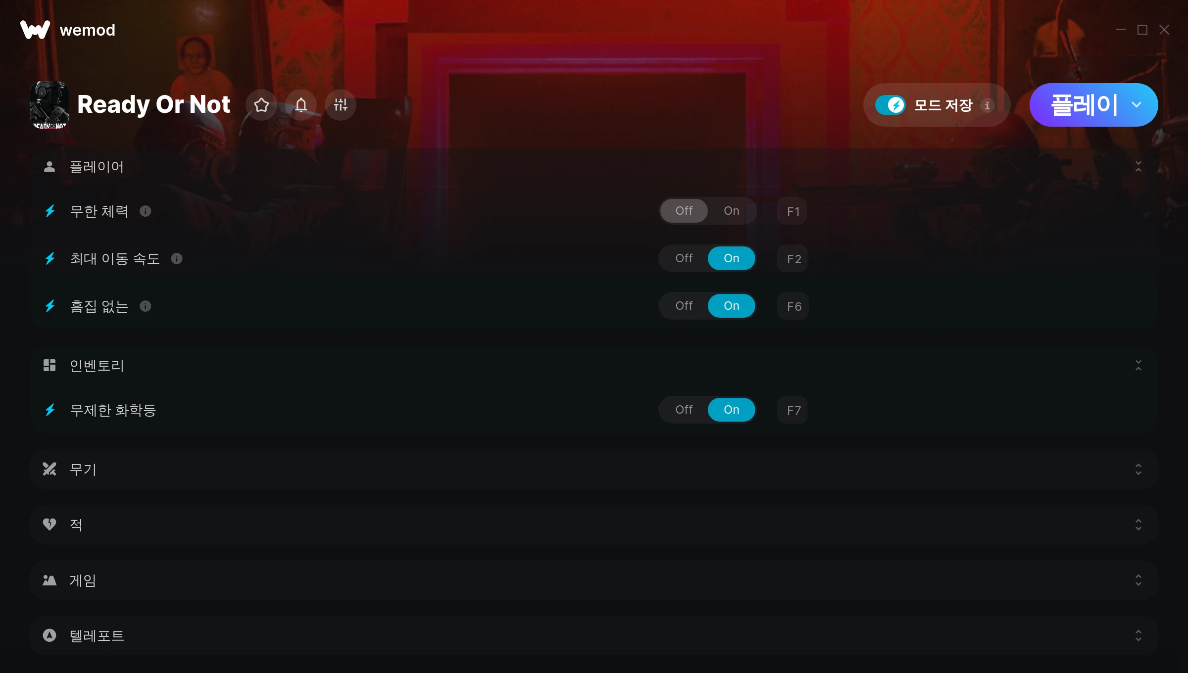 Launch wemod ->click play -> go singleplayer -> select mission -> enter mission -> activate cheats